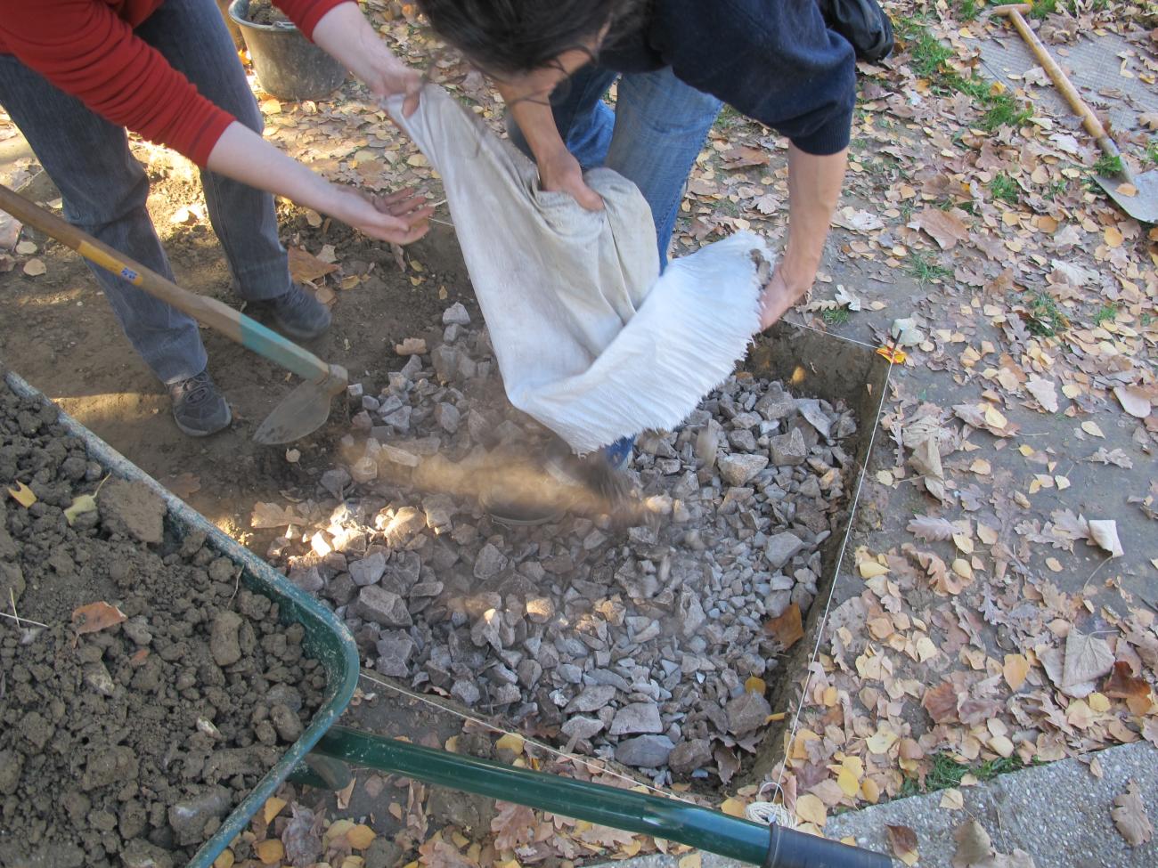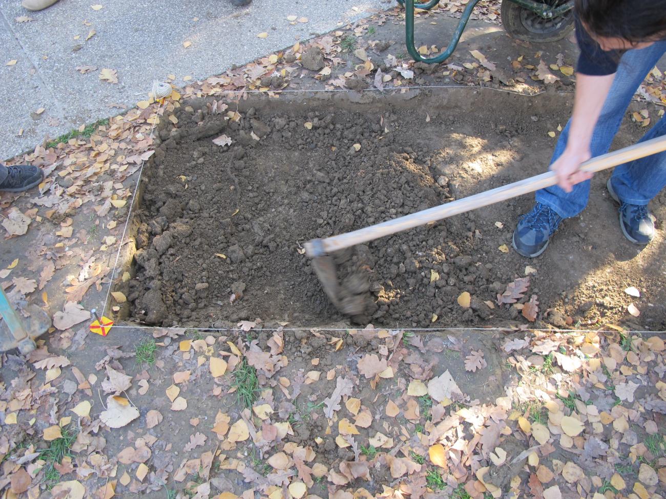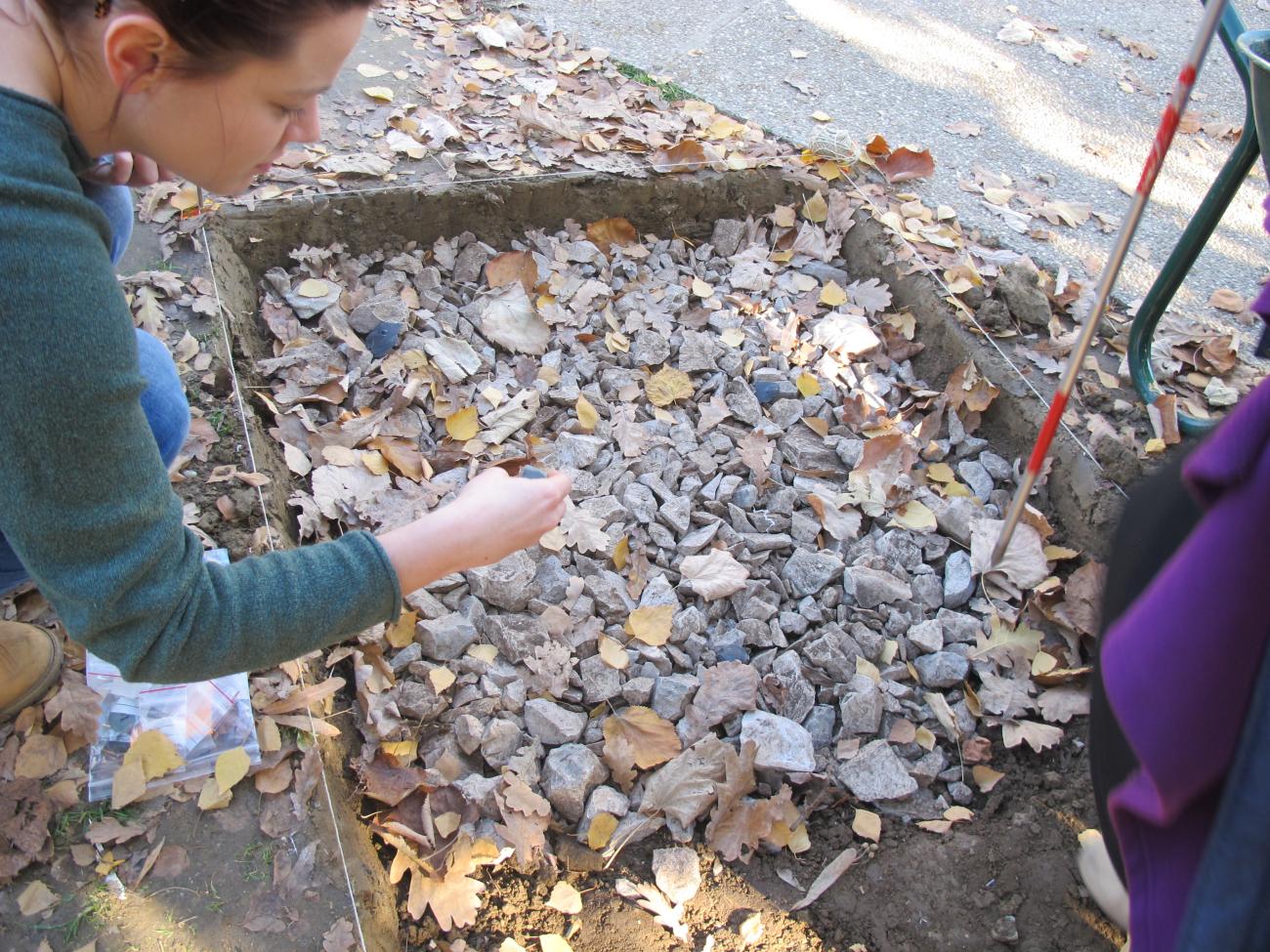 Two 1x1 meter quadrants were dug, with the help of colleagues, in November 2015 in the vicinity of the Faculty of Humanities and Social Sciences in Zagreb. We left one quadrant with its natural, dry sediment and we filled the other with debris taken from the Kličevica canyon near Zadar (See Figure 2a-d). The Kličevica canyon is located in the same karst environment as Mujina pećina and the debris was more easily available than that from Mujina pećina. Next, the artifacts were carefully placed in the ground and their position was taken with a total station. Each quadrant had ten unretouched and ten retouched pieces to better assess trampling damage caused by different sediments; sediment is what McBrearty and colleagues thought plays the most decisive role in damage (McBrearty, et al., 1998, p.122). Everything was photographed and documented. The quadrants were then refilled, and their surfaces were trampled to look natural to passers-by. The artifacts were left in the sediment for seven months. They were carefully excavated and retrieved in June 2016, then washed and dried.