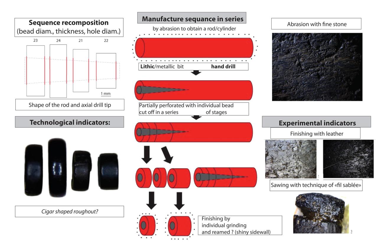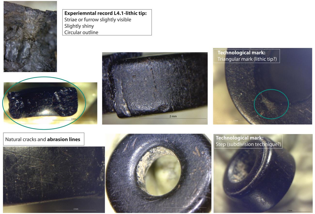 All the beads were examined with a microscopic approach. Firstly, examinations of all marks on the surfaces with a Binocular Stereo microscope and digital USB microscope were carried out. Subsequently, data from technological, ethnoarchaeological and experimental archaeology literature were compared to the results from observations on archaeological objects (interdisciplinary analogical approach).