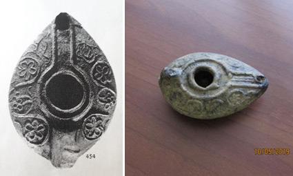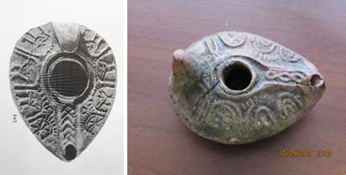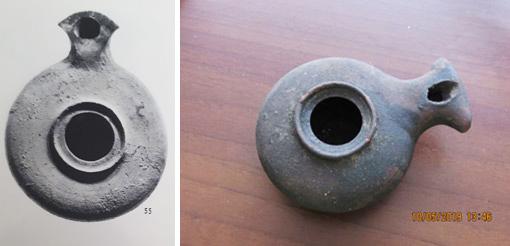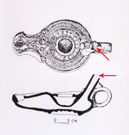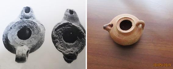 We did not examine means used to extend burning time, as we assumed that it would be easy to do so by replacing the wick during burning. However, this is a desecration of the Shabbat, just the same as moving the wick or pouring oil into an already-burning lamp. Another solution is an additional mechanism inside the lamp, which is known from archaeological excavations, as seen in this luminary dated to the 1st century BC which was found in the archaeological excavations at Beit Natif and Herbet Otza (See Figure 13).