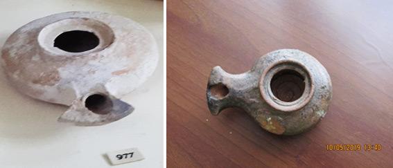 In this experiment, three types of lamps were used, from the Herod the Great (king of Judea at 40-4 years BC) period, Roman-Early Byzantine period (1st BC-AD 7th centuries) and Early Muslim period (8th to 9th centuries AD) at Israel history. The body of the lamps of the Herod the Great epoch and the Roman epoch were made with the help of a wheel, but in the case of the lamps of the Herod the Great epoch, after the lamp's body was made, a nozzle was added on. On the other hand, the Early Muslim lamps were made using molds (See Figure 11). These are the differences between the three types of lamps that were used in the experiment.