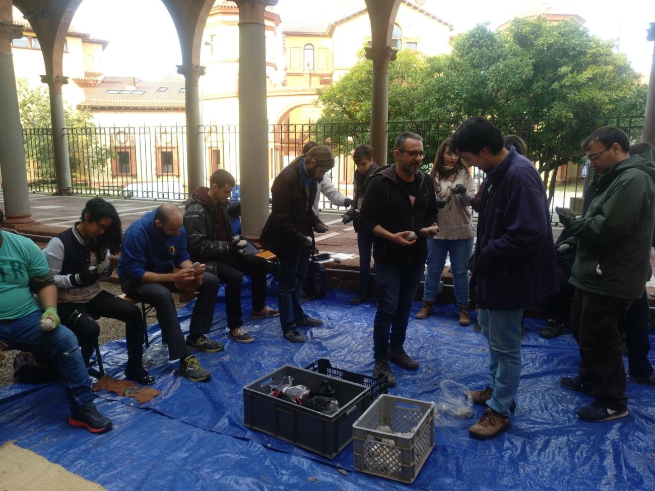 MAC also participates in university training in archaeology through the Universitat Autònoma de Barcelona and the Degree and Master’s courses in which experimental practices are the basis. For the archaeology degree, training in lithic technology is addressed from the experimental perspective. In this sense the course is taught through master classes, demonstrations and hands-on activities. This kind of approach to flint knapping allows students to become more familiar with the identification of the techno-functional traces on stone tools and learn the fundamental methods and techniques of prehistoric lithic production. In this way, they acquire the basic concepts of chipped lithic technology (See Figure 3).