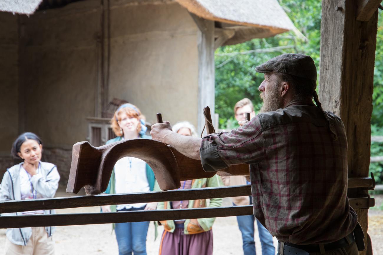 The day started with apple tart as per classic Dutch tradition, followed by a tour of Archeon by an archaeologist, who walked us through the exhibit from prehistoric times, all the way to the Romans and the Middle Ages. The park is an all-round reconstruction of these different time periods, everything from canoes, houses and natural surroundings are thought out to assimilate the times that they represent. The tour provided insights on the restoration of canoes, the reproduction of ancient arrows, the burial of families and a demonstration of how oxen were used for ploughing.