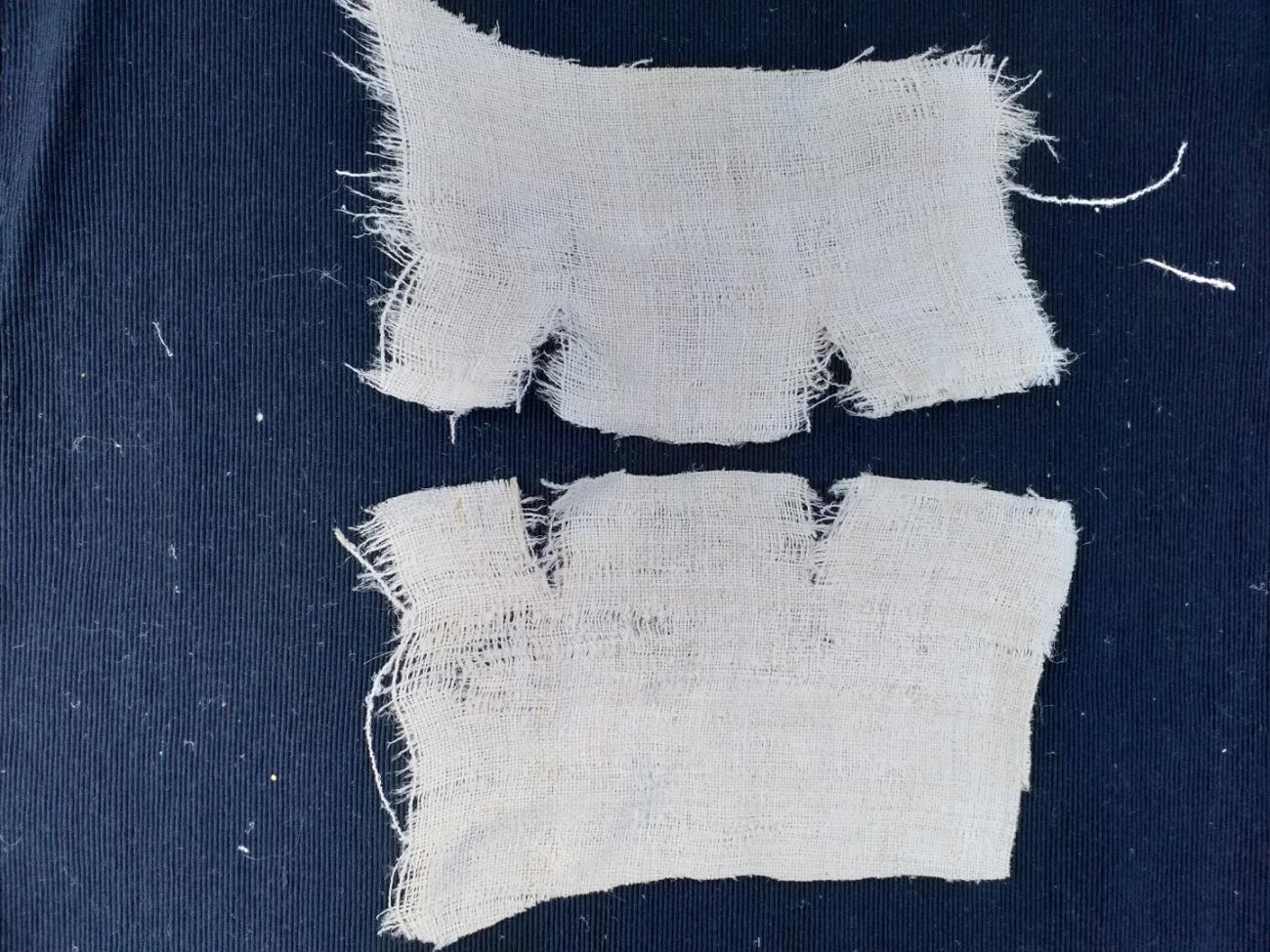 They were just ordinary textiles (maybe very old clothes), which started to lose their original function. The fabric was relatively valuable and the dress was certainly inherited as well. However, sometimes the fabric wore down and became “very fine and net-like”. It was probably then torn and used to create a contract of mutual obligations.