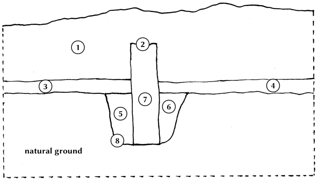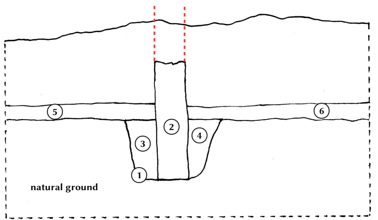 At stage 3 all the parts of a house that are in the ground or in direct contact to the ground should be documented. In our example, this would be a brick wall, the fills of its foundation trench and the floors (See Figure 10, units 2–6).