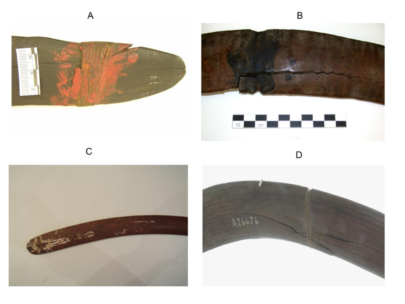 Specifying the cultural context of each object is often not easy, especially for throwing sticks and boomerangs whose conditions and dates of collection are very diverse and often unknown. These contexts are complex and very diverse with, for example, more than 250 different indigenous language groups in Australia. The study of these artefacts must be deepened in the future by multiplying the approaches: study of their more detailed physical characteristics, studies of macro-traces, determination of the species of wood used etc., so as to be able to classify and group them more easily, not only within large collections of a museum, but also between different museum collections.