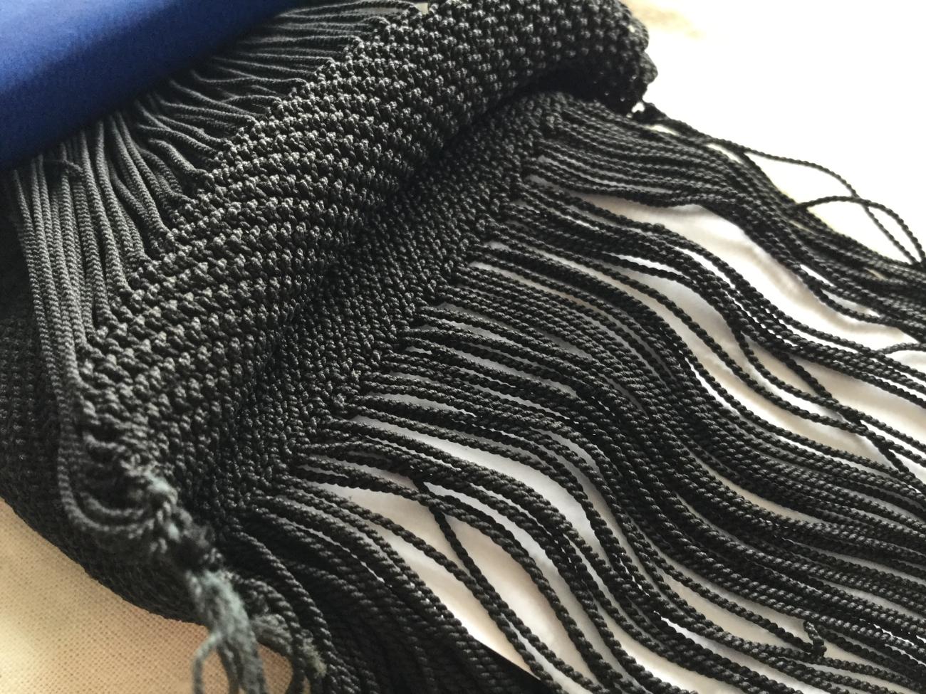 Each tassel consists of hundreds of twisted loops that are incorporated in rows near the beginning and end of the band as it is being woven.