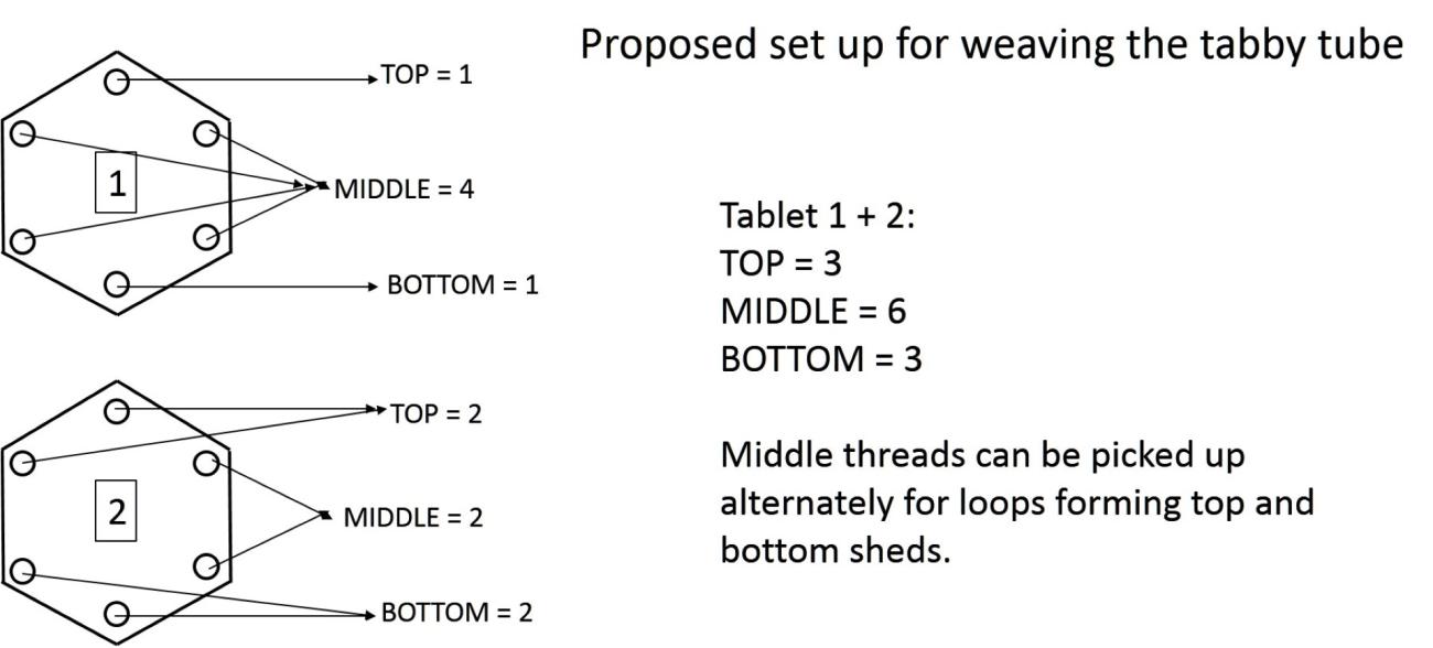 Therefore, it is clear that both the tabby-weave tube and the hexagonal tablet-woven patterns are woven on the same warp, but how is this possible?