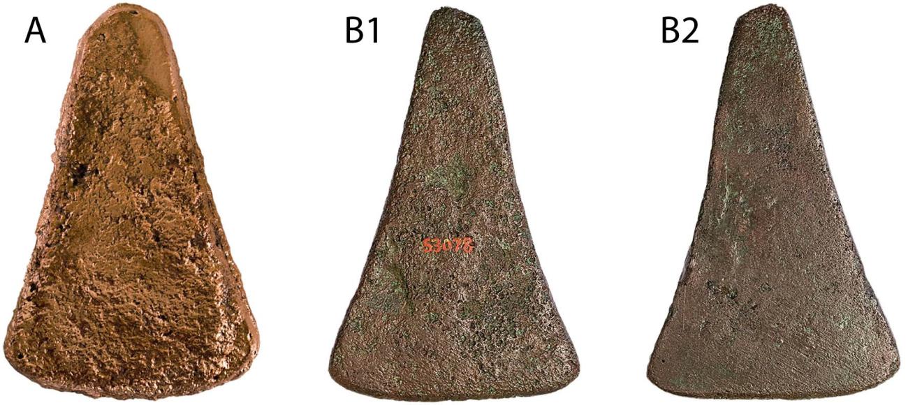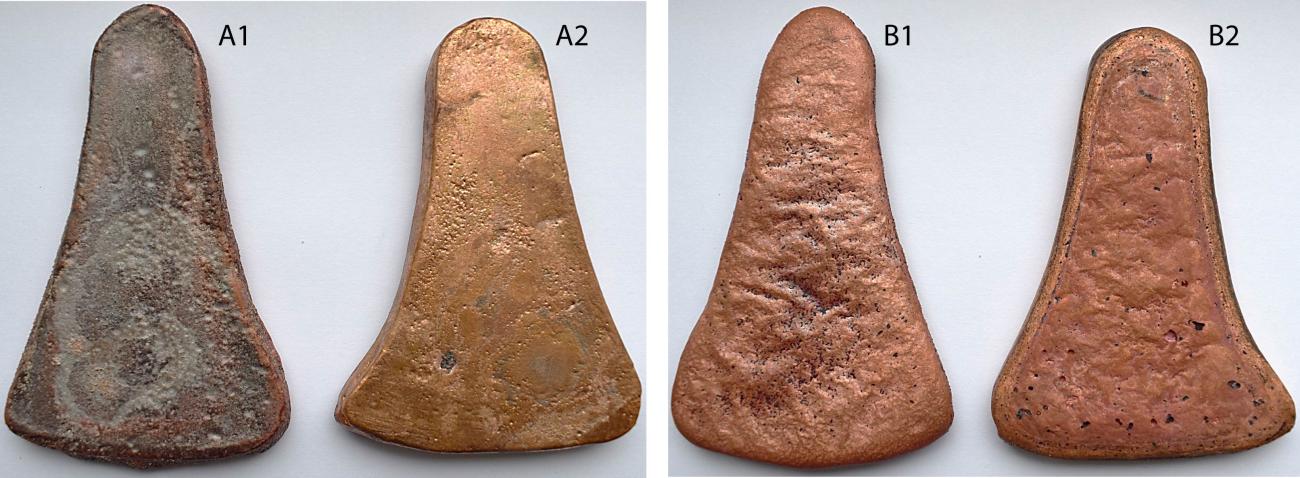 Papillon’s experiments demonstrate that various mould types could be used to cast some of the axe-ingots of the Plouhinec hoard. The clay mould experiment, especially, produced results similar to the original artefact. In turn, this also suggests that an arsenic-rich copper is not automatically necessary to achieve such porosity.