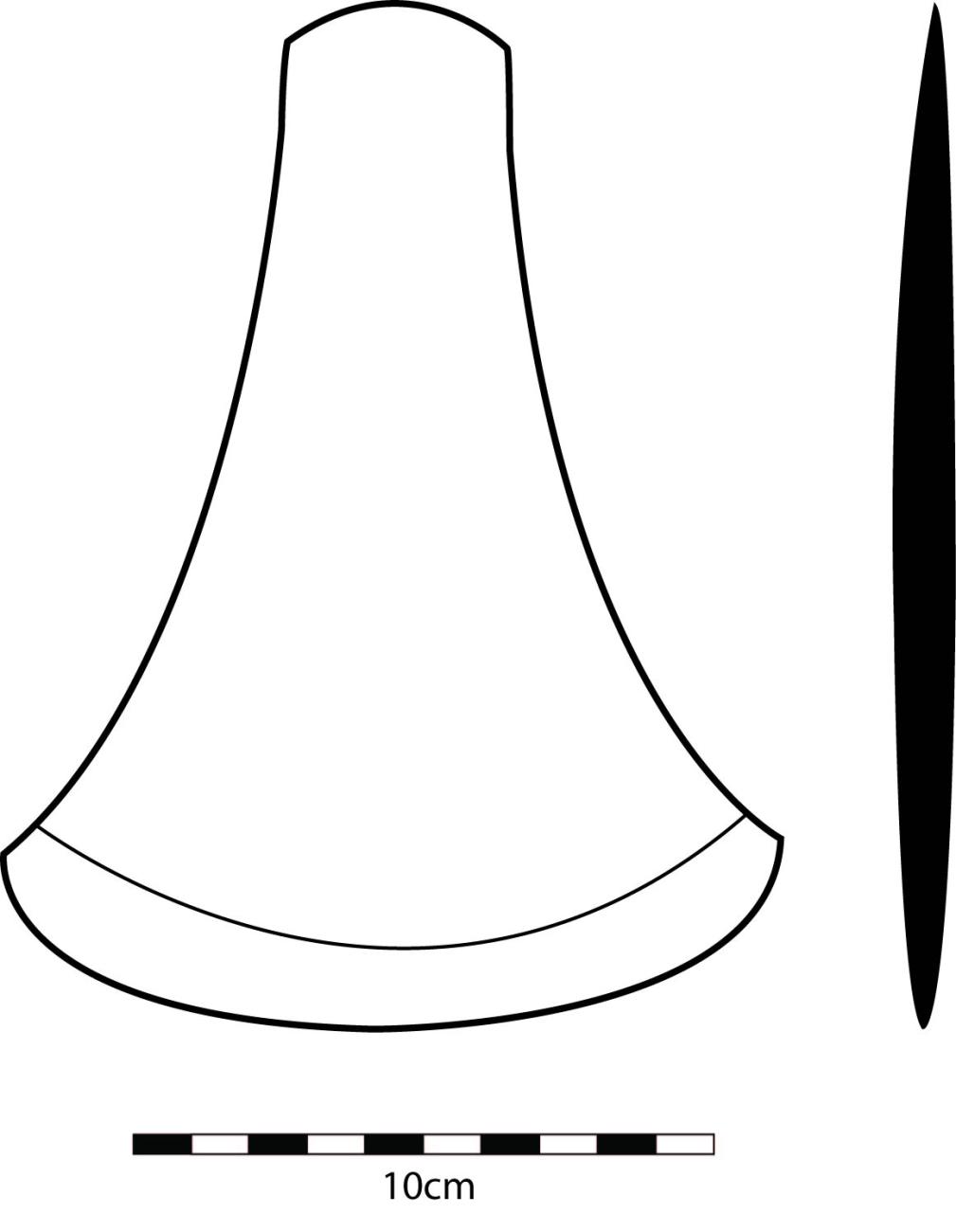 - An elongated depression near the cutting edge, with a small (2 mm long) perforation in it. Again, the perforation is impossible to photograph due to its angle
