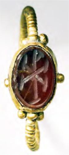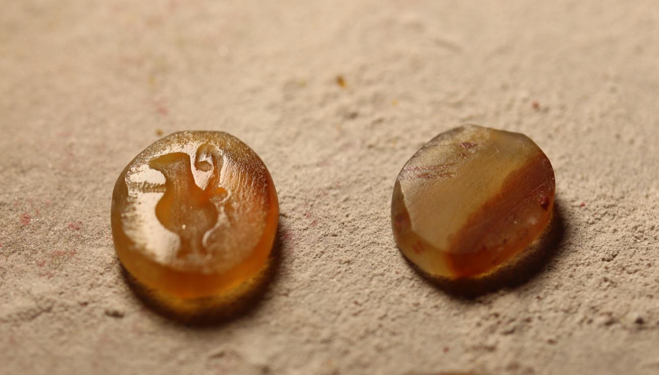Pliny the Elder referred to carnelian as a sard stone due to its commonness (Pliny the Elder: XXXVII, p.105). This opinion is confirmed by the large number of engraved gems made of carnelian, which are common in archaeological sources (Wąsik, 2018, p.49). The modern name carnelian is probably derived from the Latin word carnis, meaning body. This notion is echoed in Pliny's comparison of the sard colour to that of meat (Pliny the Elder, XXXVII, p.86).