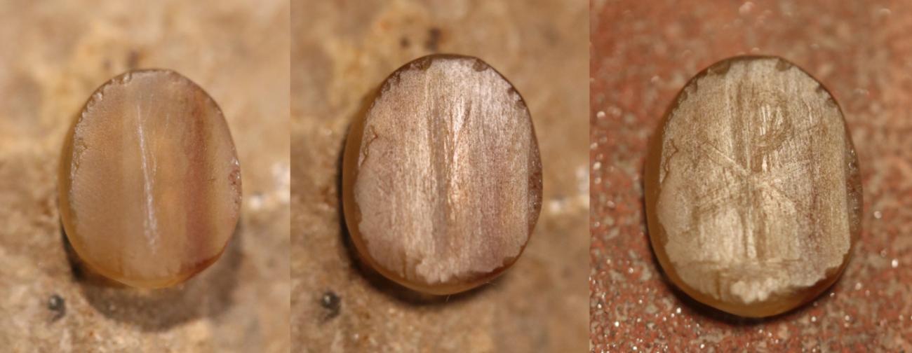 Then, came the stage when the shaped carnelian gems were to be engraved. For the experiment, a stone decorated with a concave Christogram (See Figure 2) served as the model (Spier, 2012, 1p.96). Decorating the intaglio required much less work and provided reproducibility of the results of the experiment (Gray, 1983, pp.191-192). Consequently, the pattern was made with the help of two techniques known in antiquity.