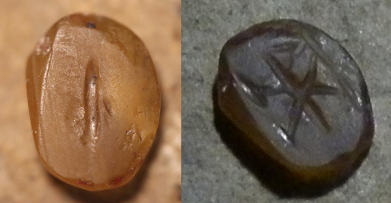 Intaglios are the main point of our interest, as they often served as seals, embedded into pendants and signet rings. Engraved gems are characterised by a wide variety of depictions applied to them, from simplified, schematic reliefs to highly detailed works of art with images of rulers, mythological or other genre scenes. The relics tend to bear tell-tale traces reflecting the craftsman's level of skills. Some are precise and organised (See Figure 1) while others display a chaotic arrangement of unskilfully engraved lines (See Figure 2) (Michałowski, 1974, p.197).
