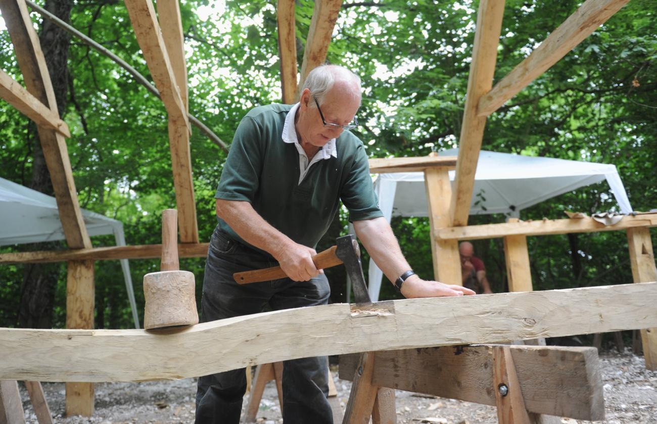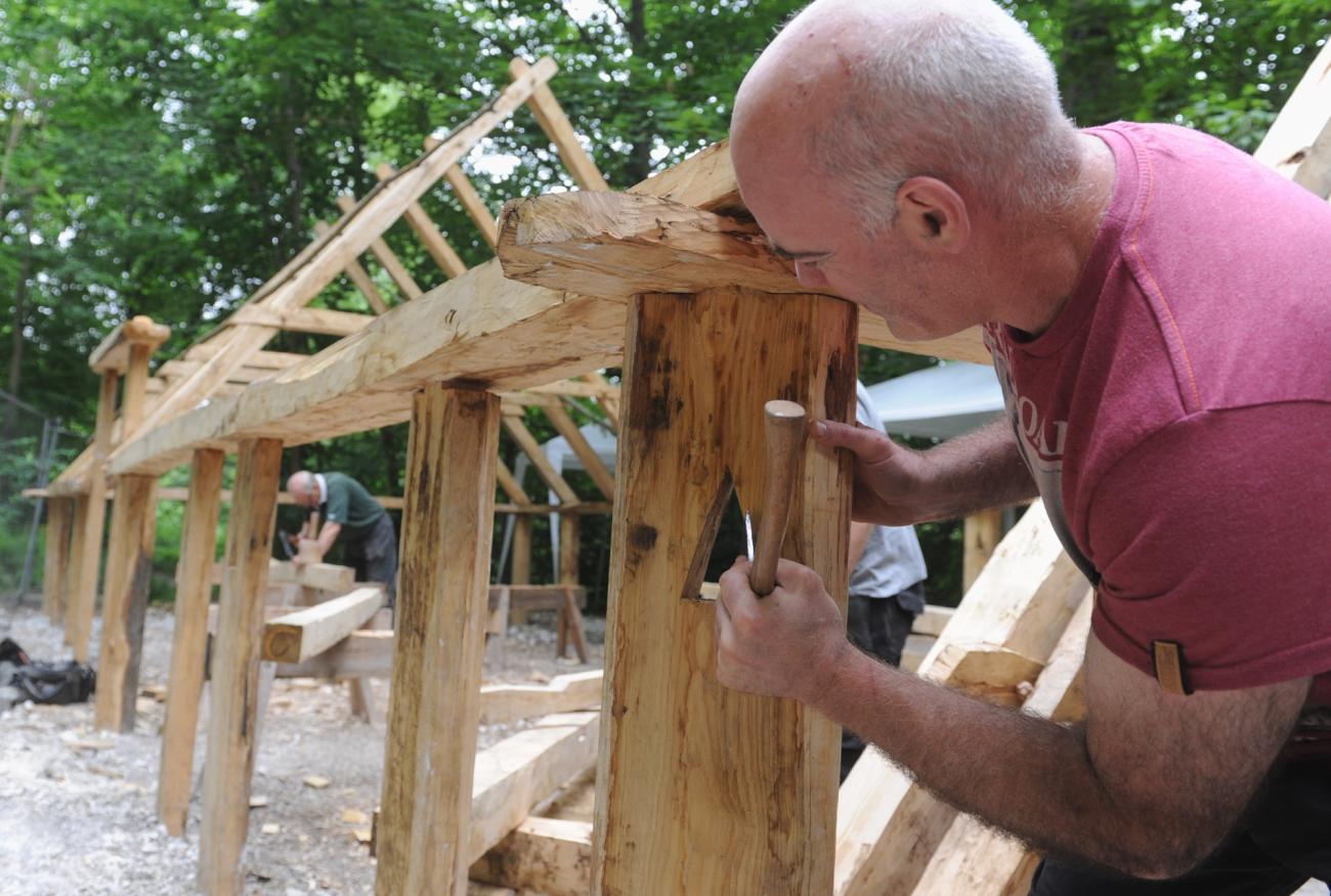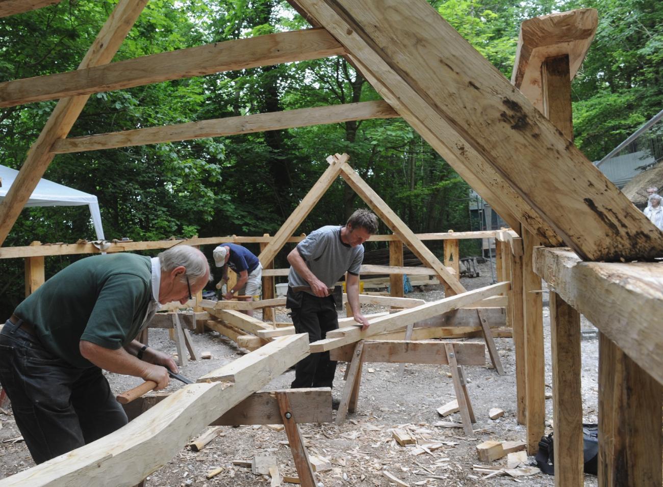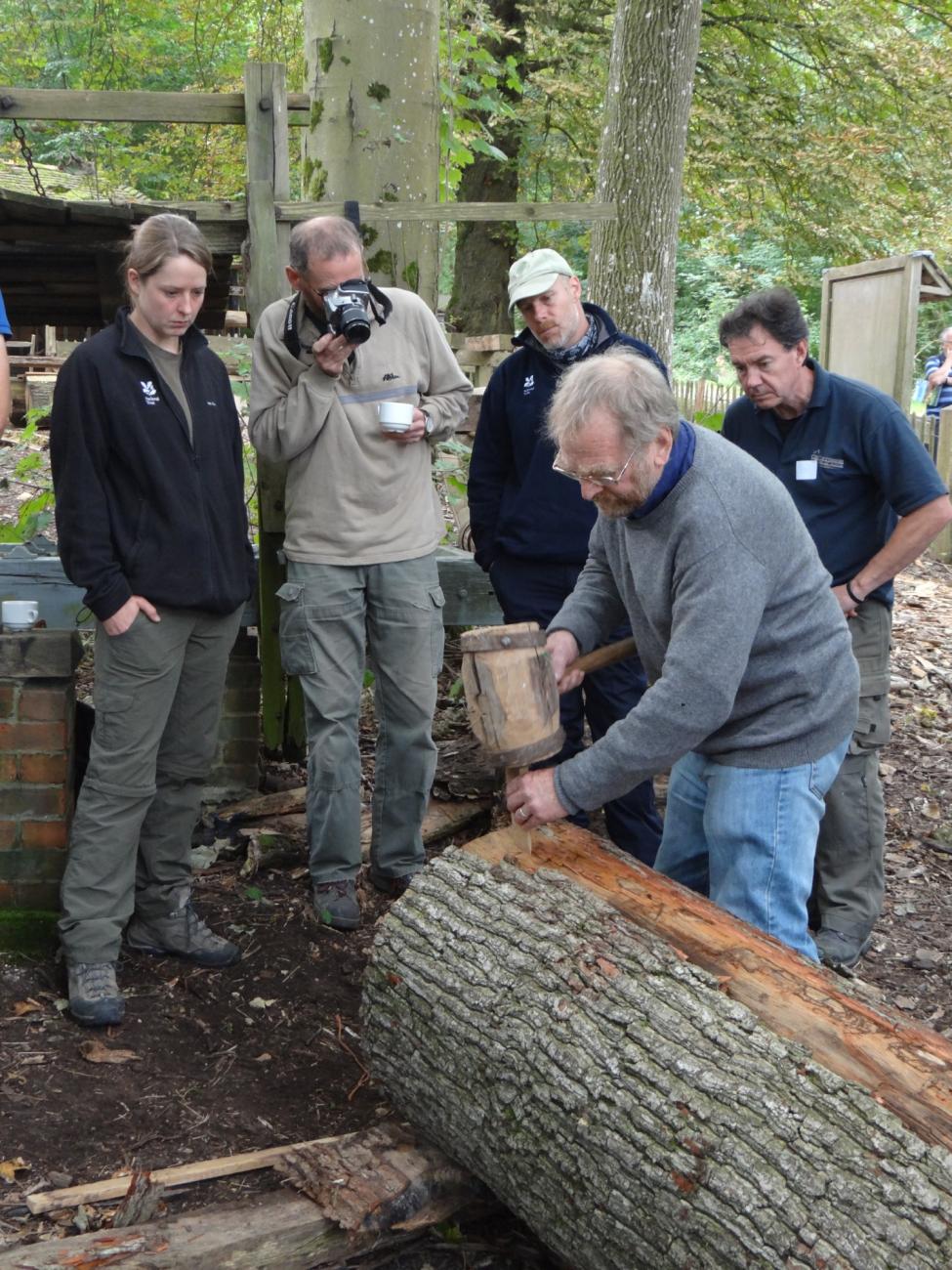 The Weald & Downland Living Museum has always shown the process of different activities, not just a finished product, so in the summer of 2014 visitors would have also witnessed the hours of discussion in the woodyard about timber conversion and the training with experimental archaeologist Richard Darrah in Saxon cleaving techniques (See Figure 4).