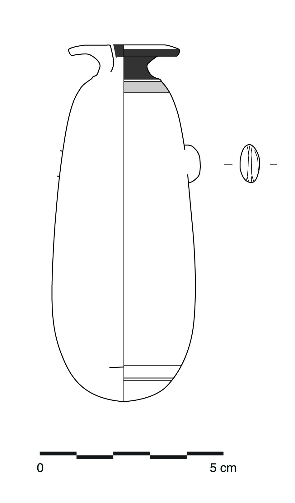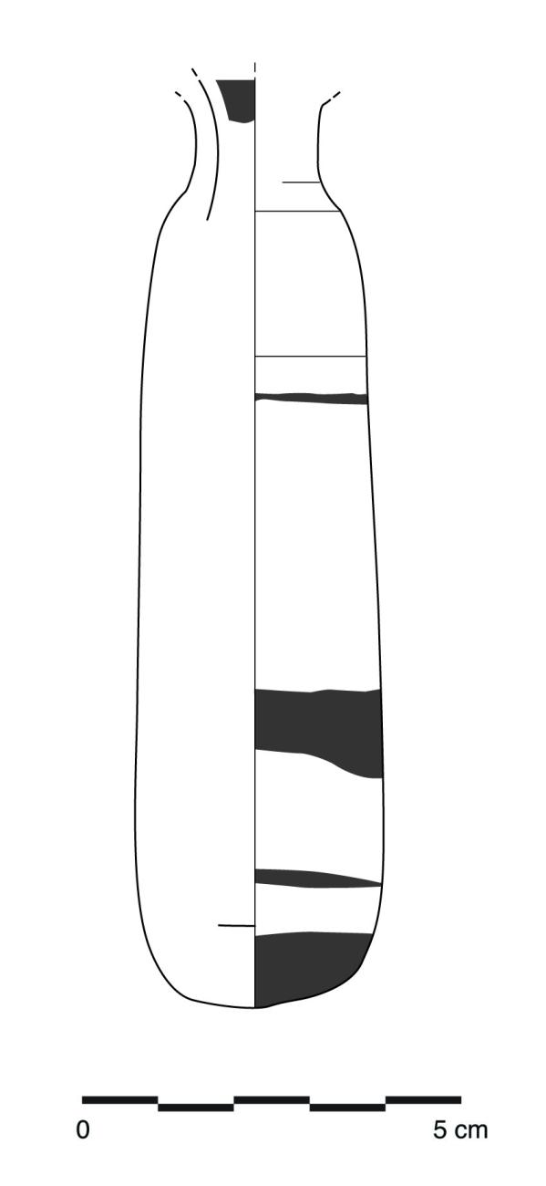 Therefore, alabastra made from the base to the rim often have a very thick bottom, which is easily identifiable in drawings of these vases (See Figure 2b). For instance, most of the alabastra made by the potter Pasiades had a pointed and thick-walled bottom (See Figure 3). With this technique, the rim was the last part of the vessel to be thrown on the wheel, before letting the vase dry to leather-hard consistency for turning and smoothing. Thus, the variation of the excess of clay left after throwing the vessel’s body may explain why we find a wide range of lip shapes and lip widths in the production of a single potter (i.e. diameter ranging between 3.5 cm and 4.6 cm for Pasiades). In addition, Pasiades was one of the only potters to give a pointed shape to the bottom of his alabastra during the turning process. Therefore, it is easy to identify vases made by this particular potter, since other workshops that produced alabastra gave their vessels a rounded bottom (Algrain, 2014, pp.68-73).