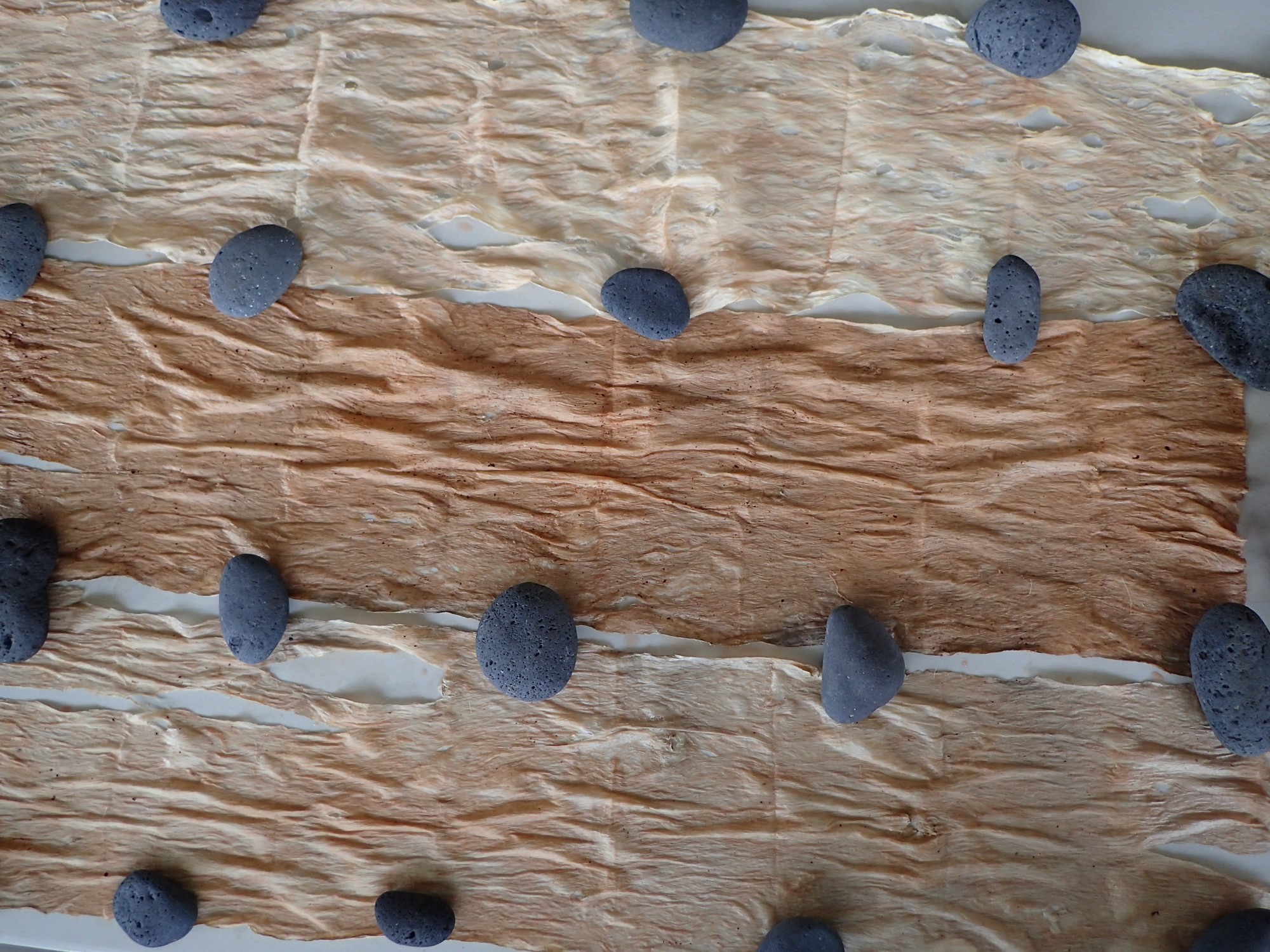 Hili: tannin-rich dye obtained from the bark of several tree species. In this experiment, I used hili kukui (obtained from the bark of the kukui tree, Aleurites moluccanus).