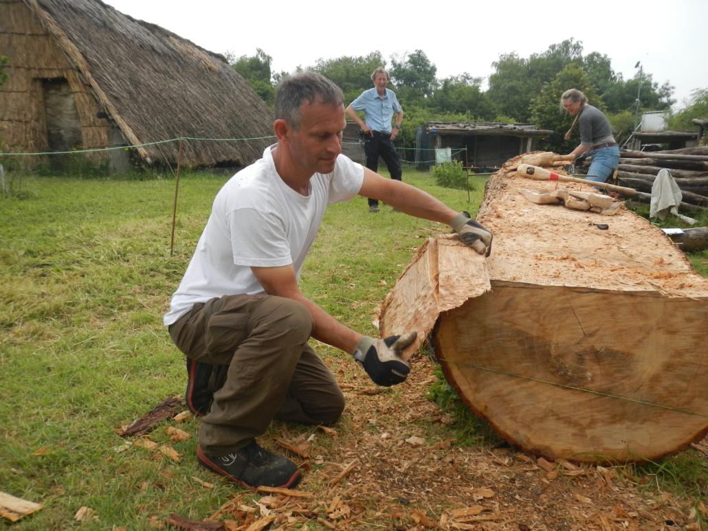 volunteers turned this trunk into a canoe with which we will explore the waters around Vlaardingen. A literature search showed that oak wood was regularly used in the Neolithic for making canoes. More importantly, a canoe fragment of oak had been found in the Vlaardingen strata of the site of Hazendonk.