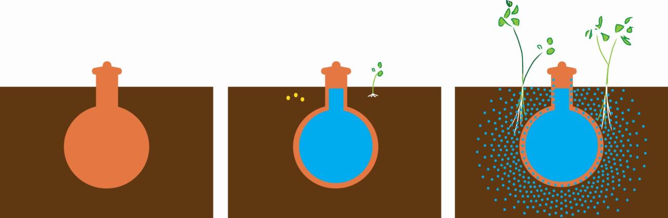 Bainbridge, D. A., 2001. Buried clay pot irrigation: a little known but very efficient traditional method of irrigation. Agricultural Water Management, 48(2), pp.79-88. < https://doi.org/10.1016/S0378-3774(00)00119-0 >