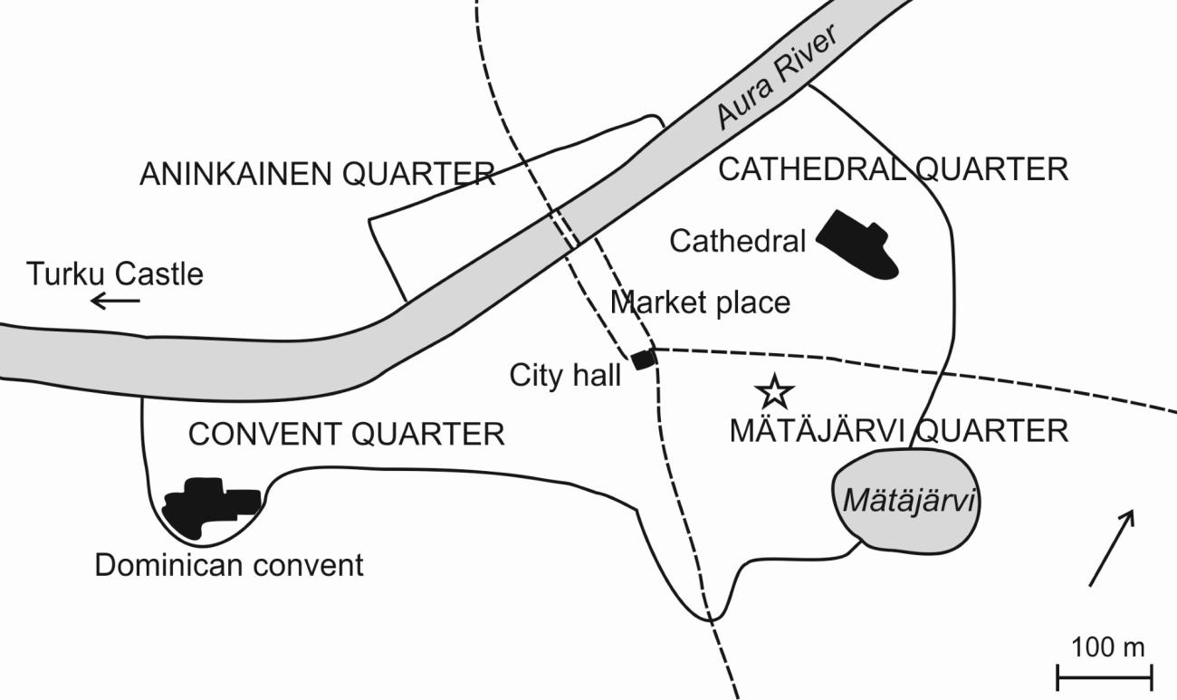 Turku is a medieval town and the former capital of Finland located by the Baltic Sea. It was founded at the turn of the 13th and 14th centuries at the instigation of the Swedish Crown, the Catholic Church, and the Dominican Order to organize and regularize administrative, ecclesiastical, and commercial life in the eastern part of the Swedish Kingdom (Hiekkanen, 2003). During the 14th century, the majority of burghers, merchants, and artisans were immigrants from Germany, mainly from the areas of Lübeck, Rheinland, and Westphalia (Kallioinen, 2000, pp.40–44, pp.103–109). Town dwellers also included civil and military servants from Sweden, Latin-speaking clergymen and Finnish people from the surrounding countryside. In the course of the 15th and 16th centuries, the number of Finnish and Swedish burghers grew substantially (Kallioinen, 2000, pp.137–140, pp.289–305). Under these circumstances, it seems evident that the musical life in medieval Turku was multicultural and multifaceted in character.