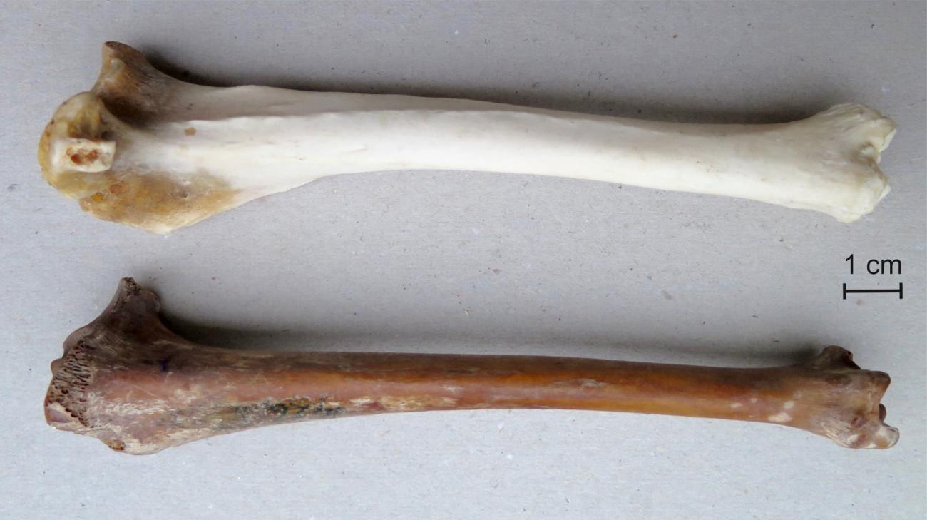 In order to make a reconstruction that was as close as possible to the original flute, sheep tibiae of practically the same dimensions as the Mätäjärvi find were needed. Most sheep breeds kept and slaughtered nowadays are of a much heavier build than medieval ones (Figure 8a). Bones of sheep of old breeds, more closely resembling the find, are not easy to come by. By chance, we had access to two excavated sheep tibiae that were unprovenanced and discarded and close to the shape and dimensions of the Mätäjärvi bone (See Figure 8b). We decided to use them. A disadvantage of these old excavated bones was that both of them – by their stay in the ground – proved to be calcified to such a high degree that it was impossible to use a knife to process them. Instead, a drill and files had to be used. The calcified bone was very solid and polished compared to a fresh bone. Although the manufacturing methods used by a medieval bone flute maker are unknown to us, it is probable that the sheep bone selected for making the flute was not processed fresh, but was cooked first in a broth to extract the edible marrow. The bone hardens when cooked, though not as hard as a calcified bone, and absorbs some fat from the marrow, effecting in a smooth surface. Therefore, the differences between the original material and the material we used may not be as big as one might initially think. Moreover, the material of the flute should not have a significant effect on the sound of the instrument, as it is mainly the size and shape of the vibrating air column that determine the pitch and timbre.