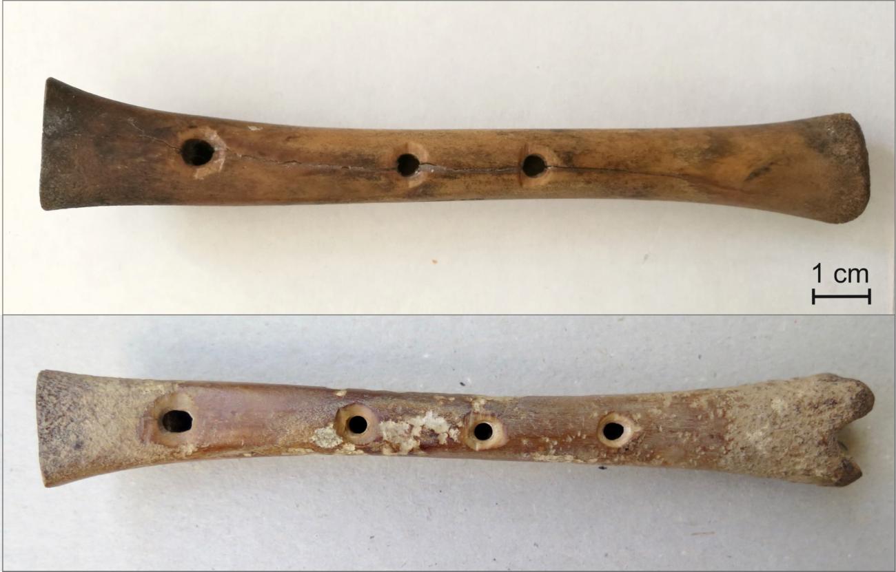 In most cases, archaeological find contexts yield only general information about the cultural setting, e.g., whether the artefact comes from an urban or a rural environment, a dwelling, a castle or an ecclesiastical building (see Brade, 1975; Leaf, 2008, pp.236–457). Medieval music treatises do not mention bone flutes at all, and manuscript illustrations and other iconographic sources appear to depict mainly wooden flutes or other types of wind instruments, such as trumpets, horns, shawms (Leaf, 2008, pp.20–30). The reason for this dismissal might be related to the status of the bone flutes, being considered as somehow commonplace or plain, too trivial to be treated in written and pictorial records. A somewhat similar marginalization appears to occur in the present-day research literature that lacks updated overviews, and comparative analyzes of the European bone flute finds, let alone studies of the musical tradition related to them. Moreover, exact copies of the finds are rare because the bones of modern sheep breeds are far too big for raw material.
