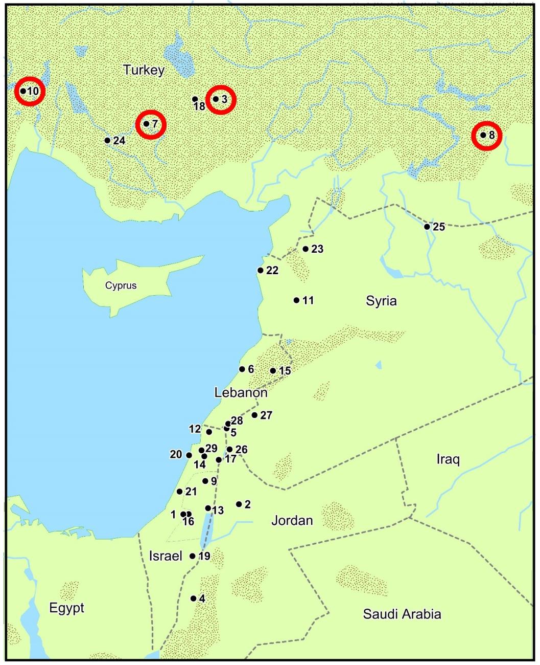| Anatolia: 4 sites out of 6 | Levant: 1 site out of 23 |
