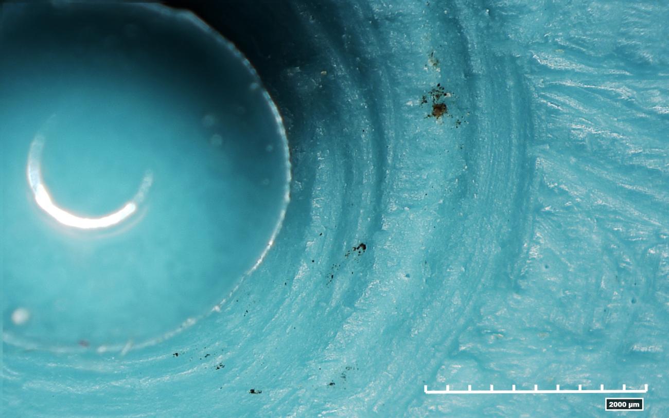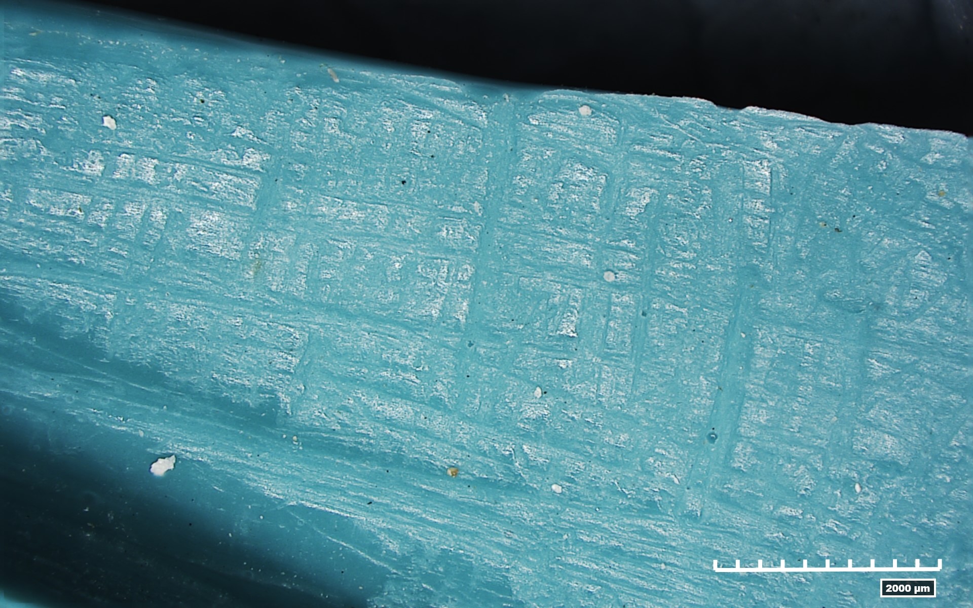 During the activity, both needles responded similarly to the processing. In fact, in both cases, the proximal part was too wide. During the drilling process, in which the eye was passed, it was necessary to employ a rotary movement of the needles, which required considerable effort. However, this action, performed either with the square eye needle or with the other, left very big holes in the leather. The author has carried out moulds on the surfaces of the needles used on the leather, with the liquid silicon Provil in such a way as to be able to have a faithful copy of the traces refractive to the processing of the leather.