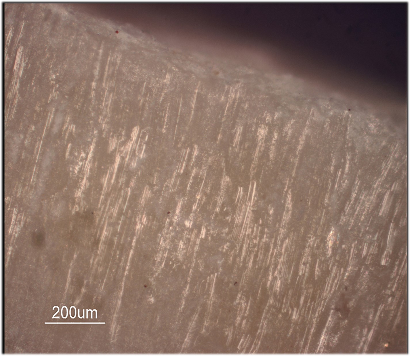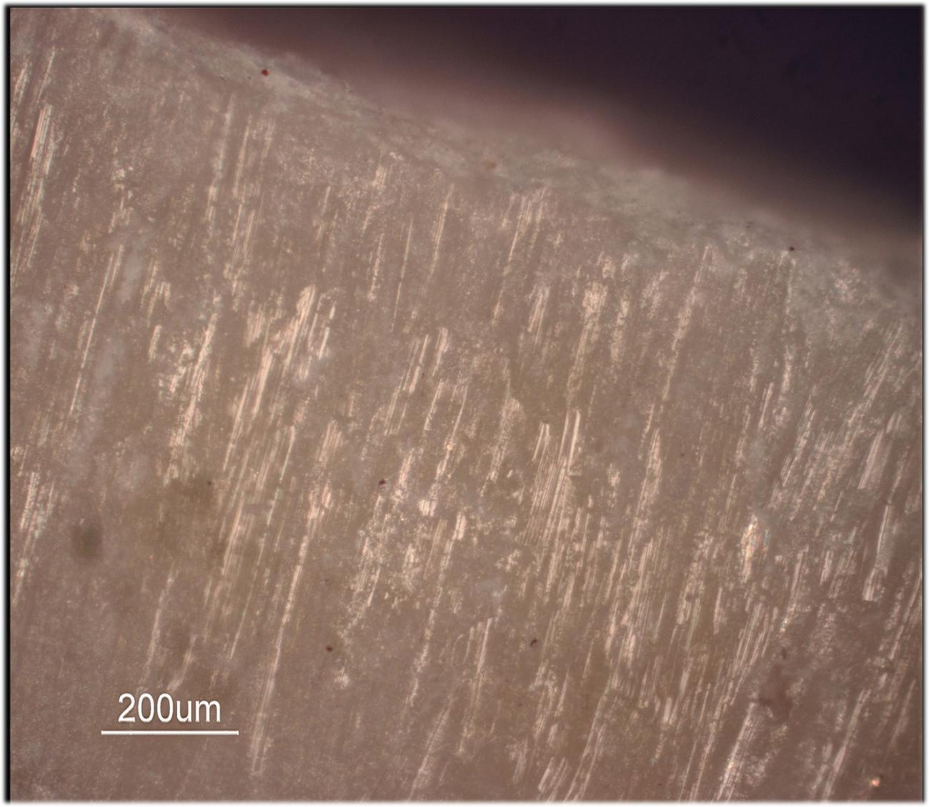 All the needles from Aradetis Orgora were analysed with a microscope to search for any techno- functional traces. Where this was possible, the analysis highlight techno- and functional traces. The analysis of manufacturing techniques showed abrasion caused by the use of a ground stone during the façonnage phase (See Figure 5a, b, c, d), while it showed that metal tools were used to re-sharpen the tips of the needles and for producing the holes (See Figure 6a, b, c, d, e).