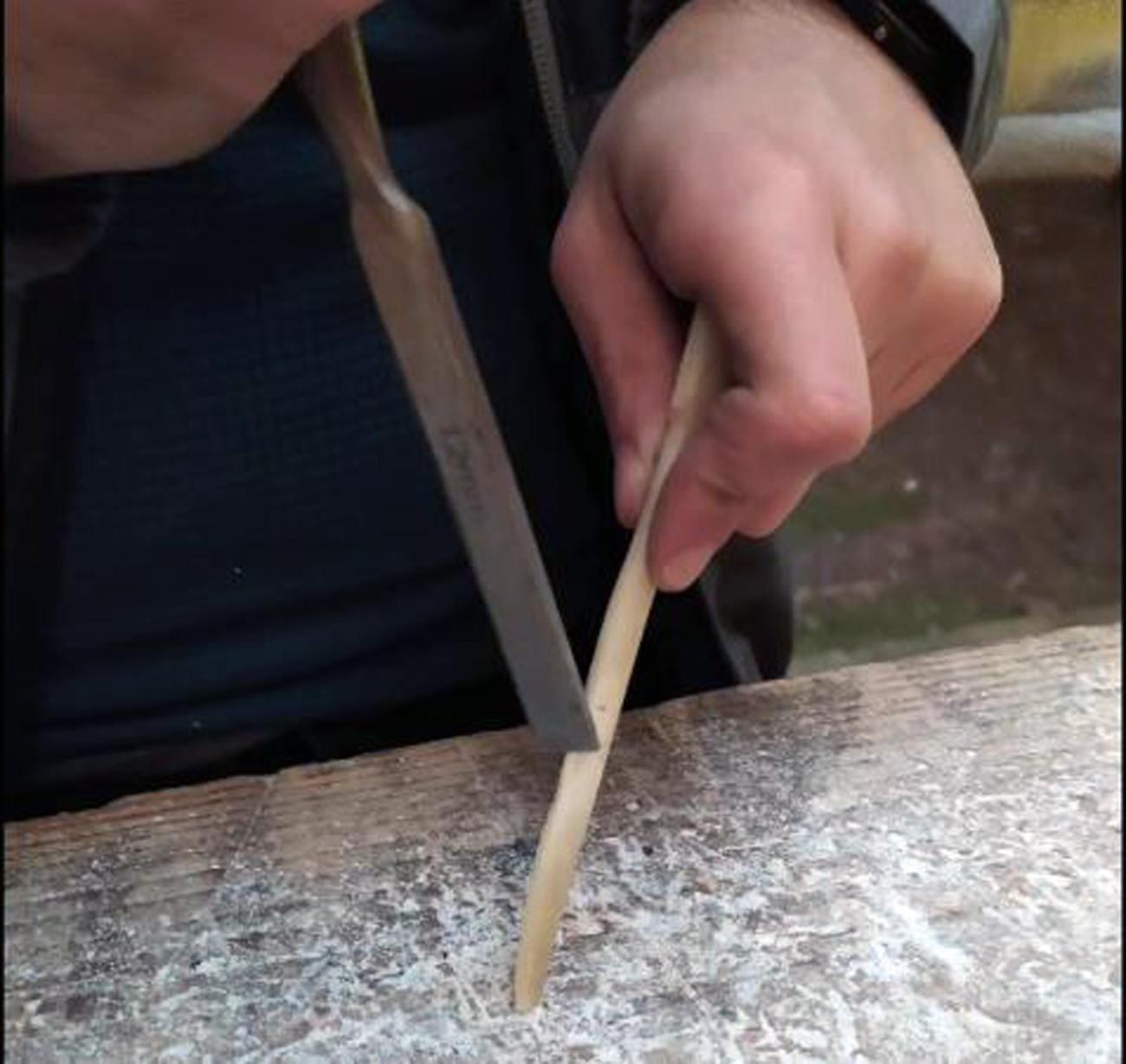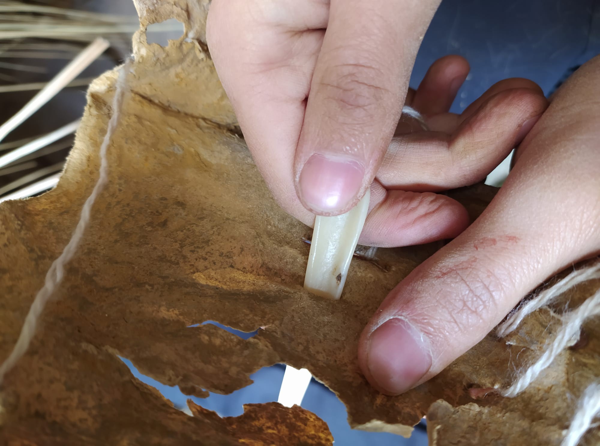 This step is the focus of this study. Starting from the preliminary analysis of traceological traces each experimental needles was used on two different materials in order to test other variables that could demonstrate their possible function as needles for leatherworking or basketry. For this reason, they were first tried out with the perforation of dry leather and then were used for basketry activities.
