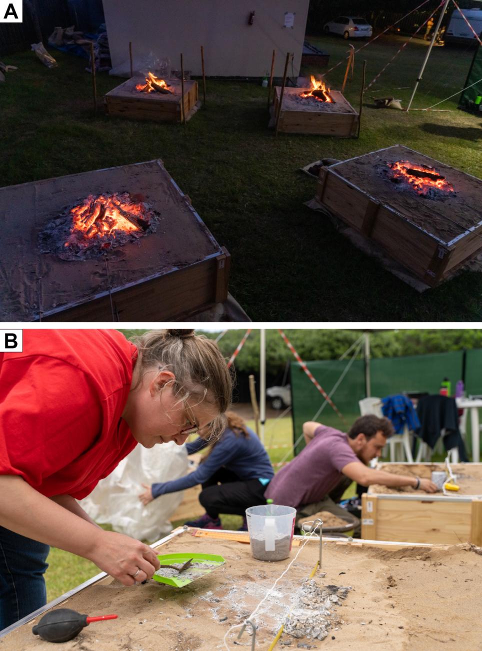 Archaeologists have approached the complex nature of prehistoric combustion features from multiple analytical perspectives and have adopted physical and behavioural hearth formation models from a range of fields, including ethnography, geoarchaeology, palaeobotany, faunal taphonomy, material science, and social theory. Particularly within Palaeolithic research, there has, during the last decade, been an increased focus on the use of pre-arranged actualistic fire experiments in order to better understand how different hearth features are formed and to assess which variables govern the process (Aldeias et al., 2016; Aldeias et al., 2019; Bentsen, 2012; 2013; Hoare, 2020; Mallol et al., 2013a; Mallol et al., 2013b; Miller and Sievers, 2012; Sievers and Wadley, 2008). While these experiments have provided a wealth of new and important information, most of them have been designed and executed by few participants and within a limited analytical framework to allow for stricter control of specific variables. The focus of most actualistic experiments has, consequently, been on a single activity or a carefully chosen process. The limited range of activities represented in each study, unfortunately, excludes the possibility of conducting more comprehensive analyses of the combined effect of simultaneous fire-related actions. Furthermore, inter-experimental comparison between analytically narrow and highly specialized fire experiments may not always be possible due to variations in documentation and sampling methods.