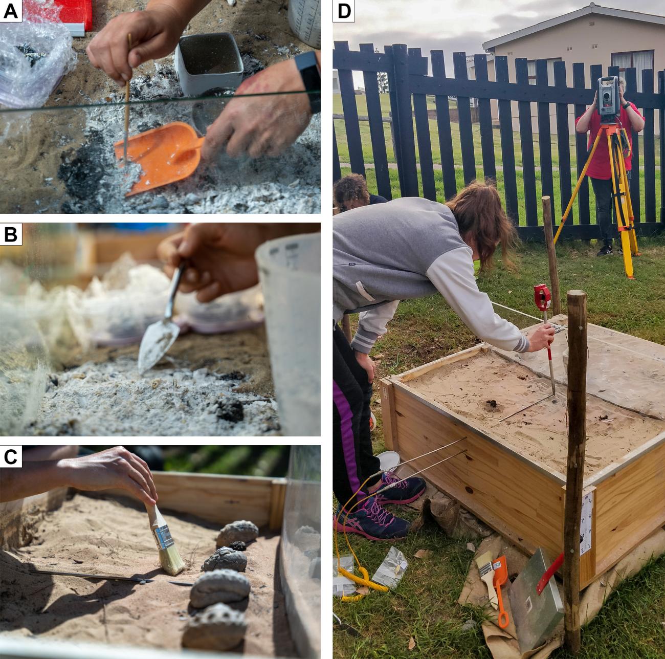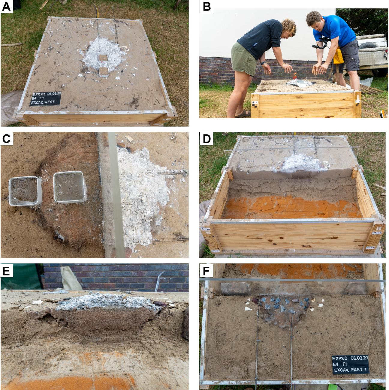 The experimental boxes proved one of the most successful components of the pilot season. They were very easily assembled and provided stable environments for the fires. Even so, it was nearly impossible to move the boxes once filled with sand. The placement of boxes and fires thus had to be carefully considered at the start of the season. Furthermore, we made labels for the boxes to distinguish each fire and for photogrammetric purposes, and some of these labels had to be replaced during the season. It was not a time-consuming process but provided a new set of critical moments that must be included in future plans.