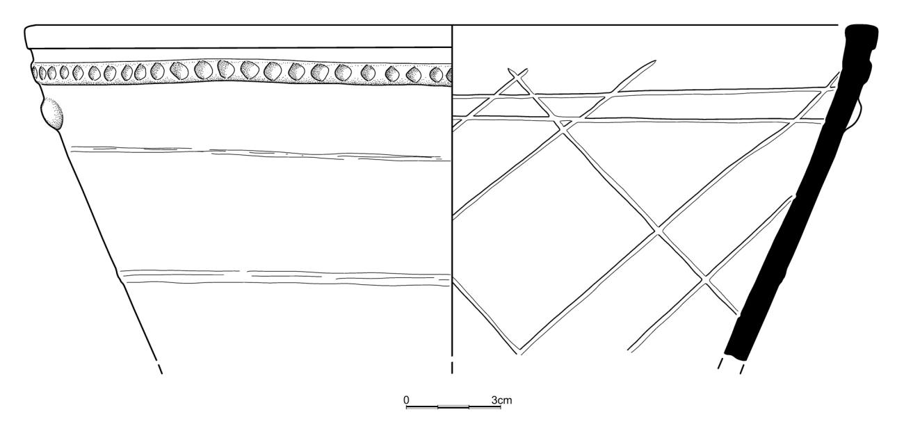 An aim of the experiment was to manufacture a scored basin. A published scored basin was chosen from the Mochlos IB volume to fabricate (See Figure 6). In order to understand the construction of the large-scale version of the basin chosen for research, the author had to practice their techniques by completing two pilot tests. One was made from stoneware (that can withstand high temperatures if needed; Rice, 1987, p.63) which had to be purchased, while another was modelled out of the same red clay that was used during the mudbrick process. The stoneware clay was made into a small version of the basin, this was intentional because the only desire up to this point was to practice the coiling method. Along with the technique, there was also another element of practice and that was the scoring on the interior. Inside this particular example was the âXâ shaped version of the scoring, which would later determine the outcome of the interior on the large-scale version (See Figure 7).