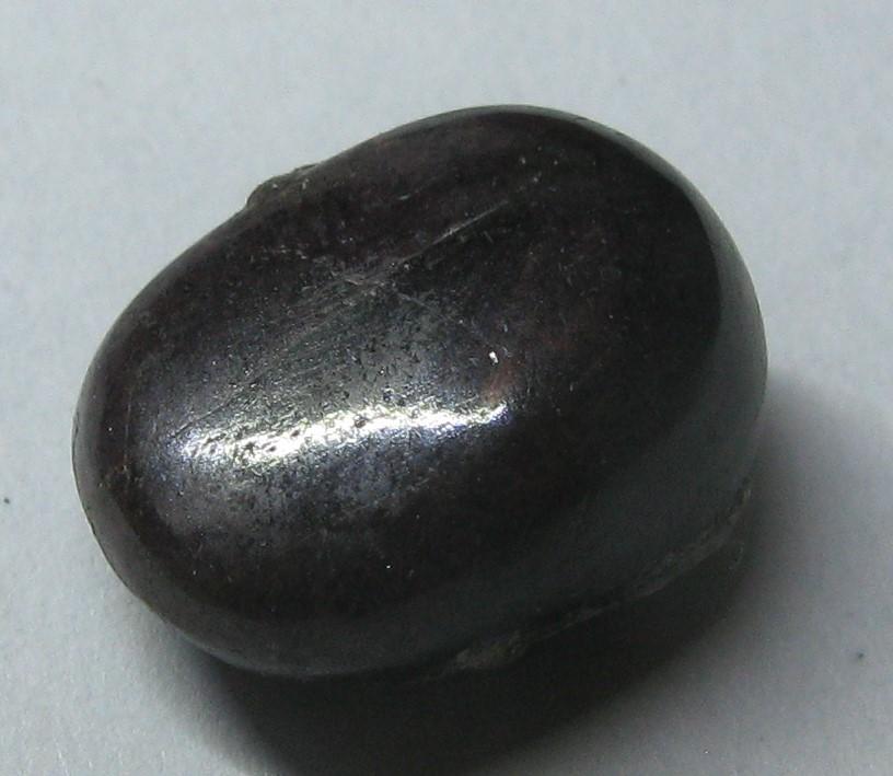 For the procedure, once the wheel was in motion, it was wet by wiping it with a damp cloth. The stone is introduced at an angle that will not gouge into the wheel. From that point the stone is constantly rotated, grinding down high spots, and avoiding the creation of any flat areas. The goal is to create a domed, symmetrical shape, either round or oval. All the coarse shaping is done on the first wheel, and when the basic shape is achieved the stone and work area are cleaned, and the gem is further refined on the next wheel.