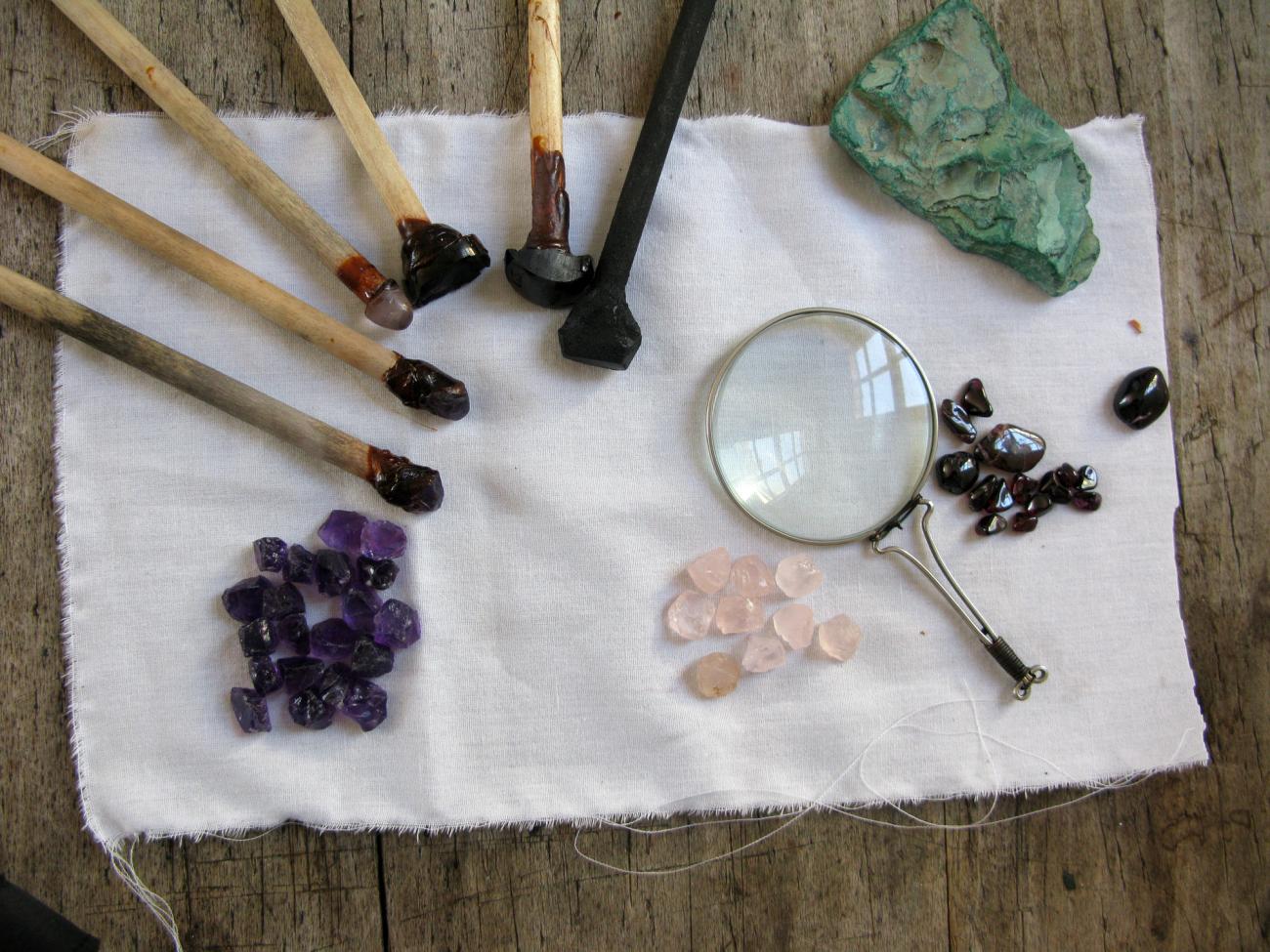 A selection of quartz, rose quartz, amethysts, garnets, opal, and carnelian were used in the experiments. These stones reflected a representative sample of the types of stones that were popular in the 18th Century American colonies (See Figure 5).