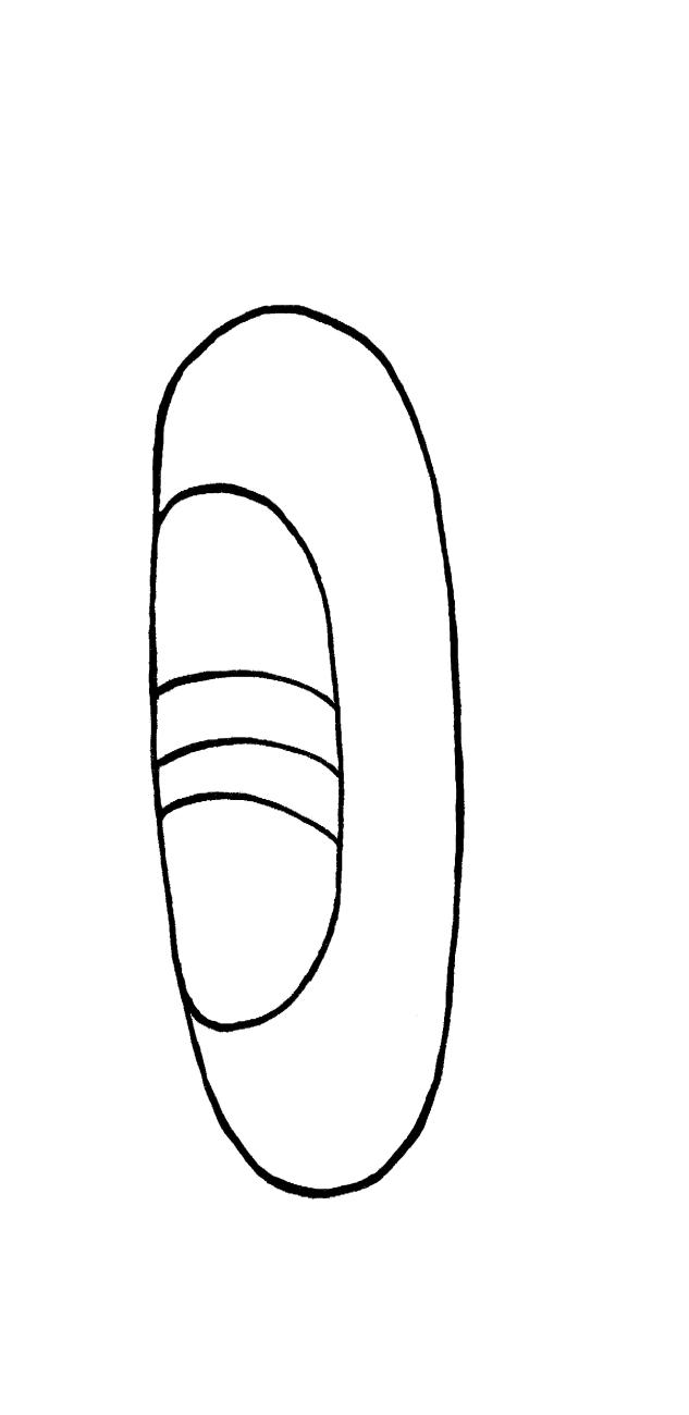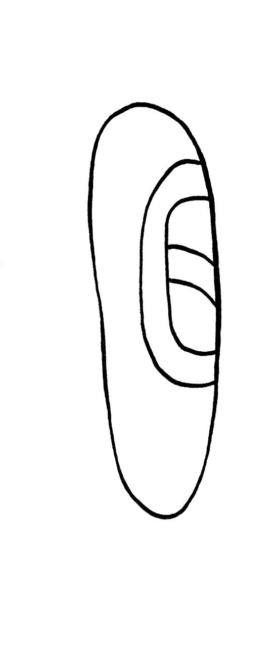 Some interesting correlations to be noted here are that, like the curved, concentric lines incised on some greenstone clam shell pectorals (See Figure 3a) and on some clam shell pectorals depicted in Olmec and Olmec-related stone sculptures (See Figure 7), Maya artists also depicted shining surfaces with curving parallel lines (Stuart, 2010). This symbolism is illustrated in the Maya hieroglyphs T24 and T121, and Maya LEM hieroglyphs, which each consist of an oval, obround, or roundrect shape with one or a pair of off-center concentric lines inside the hieroglyph, and inside this interior shape is either a pair of curving parallel lines (See Figures 13a. Maya hieroglyph T24; Fig 13b. Maya hieroglyph LEM as a shiny celt) or smaller pair of concentric lines placed in an orientation opposite to the larger concentric lines (See Figure 13c. Maya hieroglyph T121; Fig 13d. Maya hieroglyph LEM). These hieroglyphs have been interpreted as denoting “shininess” (Stuart, 2010; Healy and Blainey, 2011), and scholars have suggested that the form of these hieroglyphs represents the profile view of a mirror (Schele and Miller, 1986), a shiny greenstone celt or polished stone (Macri and Looper, 2003; Stuart 2010; Healy and Blainey, 2011); or even shiny, reflective shell “tinklers” (Healy and Blainey, 2011). With their oval, obround, or roundrect shapes, concentric interior line(s), and/or interior parallel lines, these hieroglyphs are not only reminiscent of the incised greenstone clam shell effigies (See Figure 3a) and the incised clam shell pectorals in Olmec-related sculpture (See Figure 7), but the off-center concentric interior lines are extremely similar to the growth rings visible on the polished interior of a Tagelus shell (See Figure 14a. Polished Tagelus shell, growth rings), while the smaller concentric lines mimic the curved play of light across the interior of the concave shell. The interior, curving parallel lines of the hieroglyph, meanwhile, are also quite similar to the rounded perpendicular ribs visible on a polished Tagelus shell (See Figure 14b. Polished Tagelus shell, ribs).