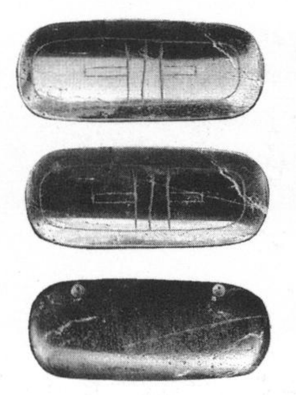 - 8In rare cases, a greenstone clam shell effigy may have a hole drilled through one end of the shell, in the middle, apparently so the effigy can be suspended vertically, as a pendant. This occurs on the two small clam shells recovered from the Sandstone Cist at La Venta in 1943, and these have been interpreted as spoons and as ear pendants (Stirling. 1943; Drucker et al., 1952, p.161). Otherwise, however, this unusual single suspension hole appears only on heavily reworked heirloom greenstone clam shells.