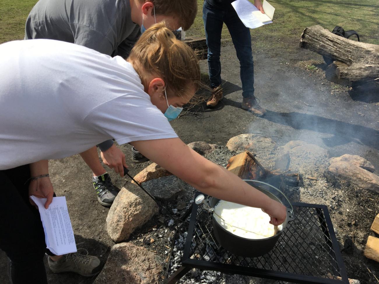 Week 2 turns to making cheese over an open fire. Pedagogically, this week again has an experiential focus, but now incorporates learning to follow a lab manual, to take careful notes and documentation, and to write up a more formal lab report â but under low stakes as the instructors know what will happen to a high degree of certainty, as they are not solving for an unknown.