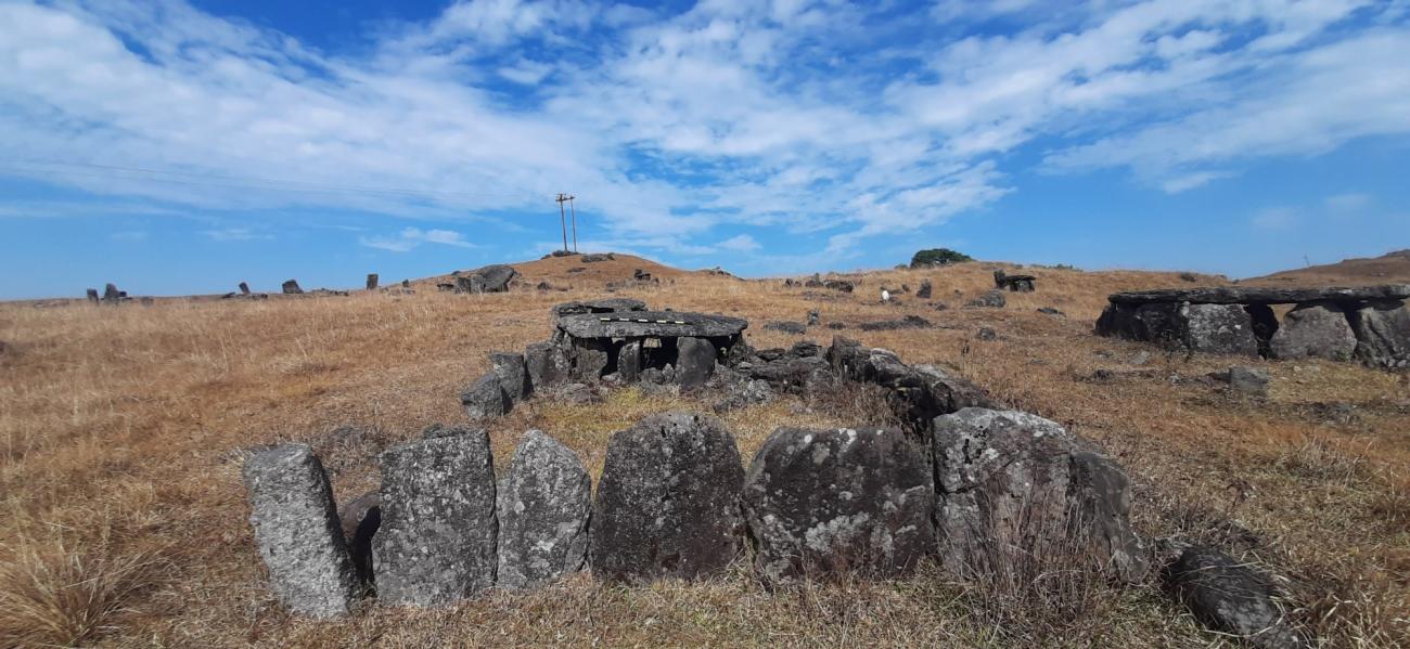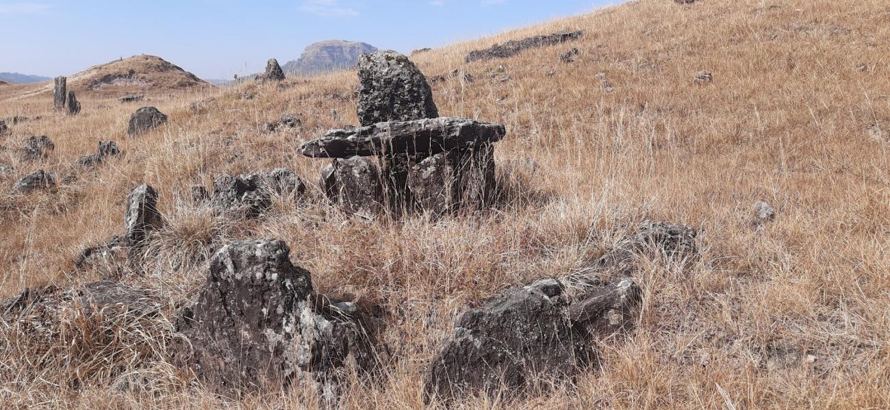 The findings based on archaeological surface studies of the site include megaliths: menhirs, and dolmens, remnants of the old market, a burial site, and structures of the dwellings with small amounts of iron slag (See Figures 3-7).