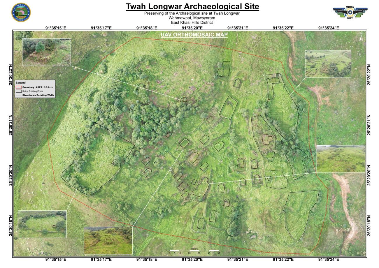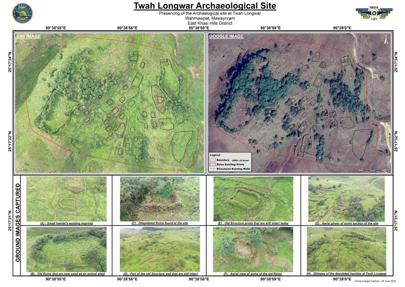 Twah Longwar is an abandoned settlement located in the State of Meghalaya in North-East India. It is located enroute to one of the world's rainiest places on earth – Mawsynram. Twah Longwar is an abandoned settlement with remnants of over twenty old houses, an ancient market, and a burial site. In a place where rainfall is a concern but also a major tourist attraction, and where lost architectural styles are only documented in photographs and oral traditions, an archaeological open-air museum built from traditional 'earth friendly' materials will contribute immensely to showcasing the region's life-sized cultural history. This article will explain how a drone, LiDAR, GIS-based technologies and archaeological methodologies are used to create a digital reproduction of the settlement which is made available to everyone. This will allow those who are unable to travel to learn about Twah longwar's long-lost traditions. The procedure for physically reconstructing the settlement will also be demonstrated. The focus is also to take the museum outside the four walls of a building where generations to come will physically envision the legacy of indigenous architecture and social life, at the same time as safeguarding the environment in and around the site.