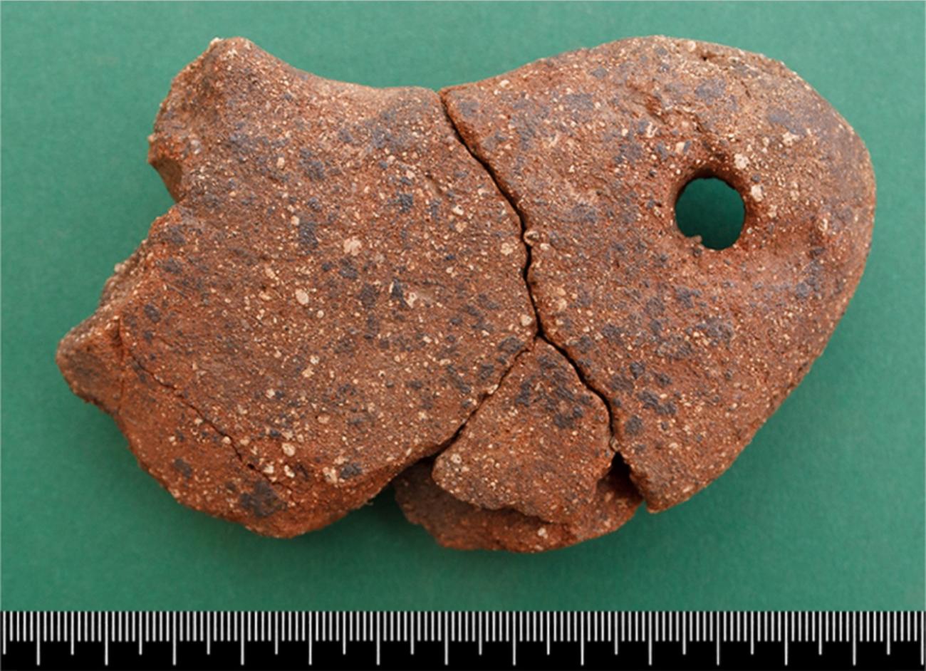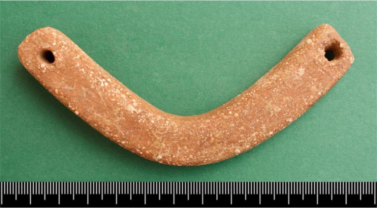Crescent or plaque shaped ceramic artefacts, associated with weaving, first appear during the Late Neolithic and are contemporary with the oldest loom-woven textile fragment found at Peñacalera Cave (Gleba et al., 2021, pp.7-8). These artefacts are common finds at settlement sites in southwestern Iberia during the late fourth and third millennium BC. Crescents are semi-circular in shape, with an oval, circular, or rectangular section, and have a perforation at each end. Plaques, sometimes also called tablets, are often either rectangular, square, or oval in shape, with between two and four perforations located near the corners or on the opposite ends. Plaques with six perforations are occasionally found (Costeira and Mataloto, 2018, p.62), although these are less common. While there is a great deal of diversity in the shape and size of these objects, plaques and crescents found in the Southwest are often lighter and thinner than those found in other areas of Iberia (Costeira and Mataloto, 2018, pp.5-9). More specifically, in the Alentejo region of Portugal, where both types are frequently found at the same sites, many of the plaques and crescents are similar in size, often weigh less than 100 g, and have comparable lengths, widths, thicknesses, and distances between the perforations (Boaventura, 2001, p.49; Costeira and Mataloto, 2013, pp.64-5; Costeira and Mataloto, 2018, p.62). These similarities are especially true for plaques and crescents with 2 perforations, leading some scholars to suggest that both types may have been used in similar ways (Boaventura 2001, p.52; Gomes, 2013, p.220; Costeira and Mataloto, 2018, p.66).