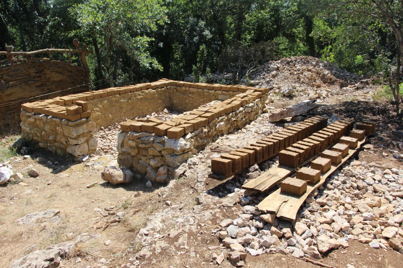 The use of modern tools or materials was strictly forbidden during the building processes; clay and soil were stomped in a basin with bare feet, in order to evaluate the time and resources needed in that period for that type of habitat.
