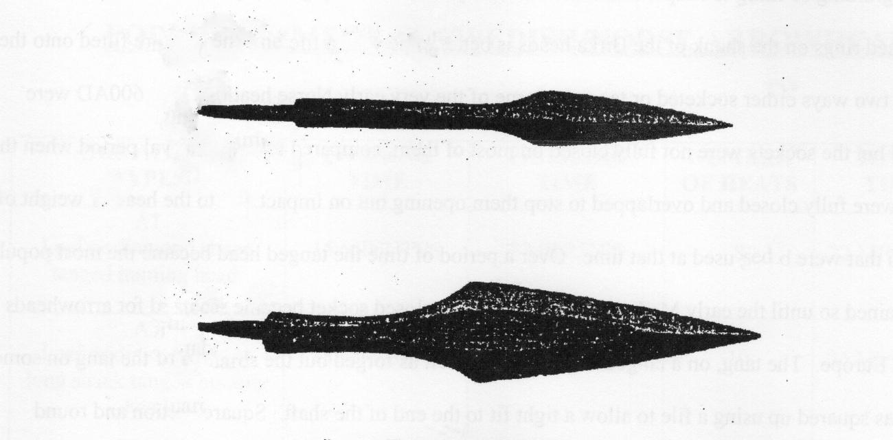These two antler heads were found in an eleventh century farmhouse in Greenland excavated by C. L. Vebaek in 1958 (Vebaek, 1961). They are typical A1 diamond shape Norse heads of the period (See Figure 18).