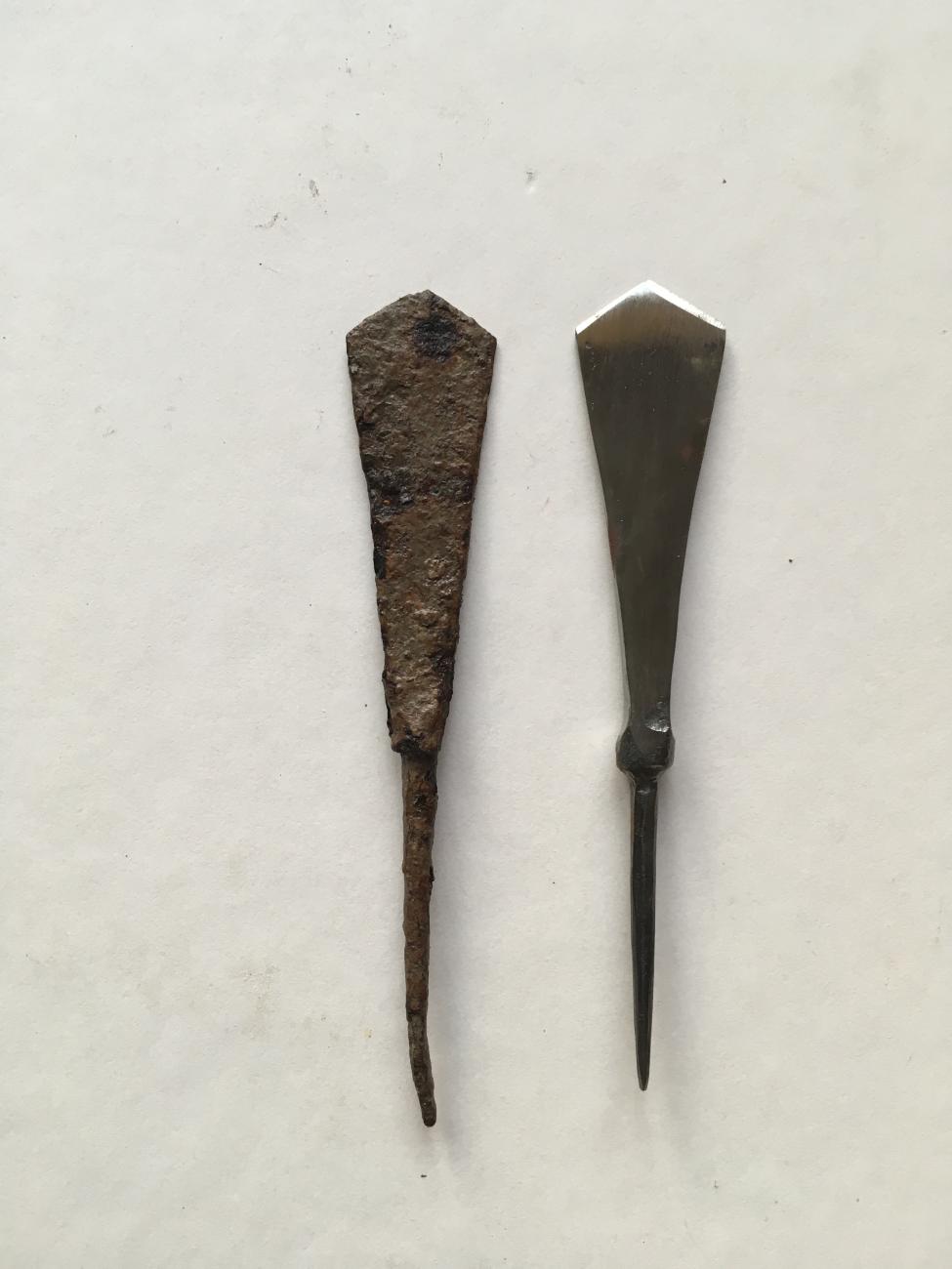 - Chisels and punches for cutting and marking the iron.