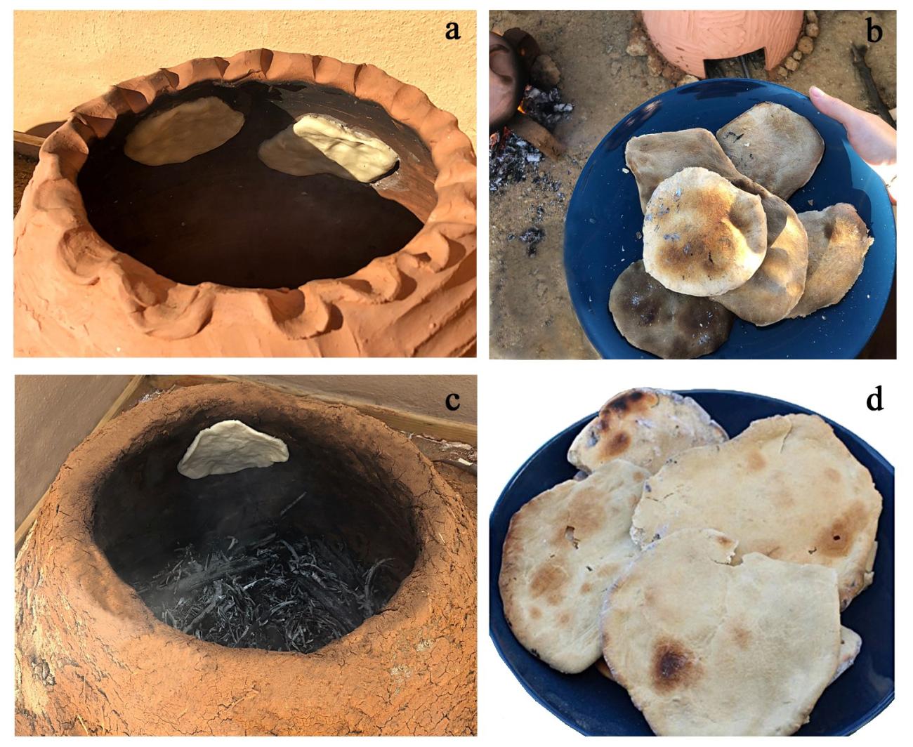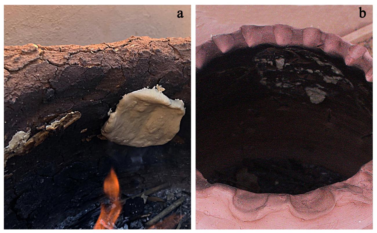 The thickness of the adobe walls and how the bread was attached to them were also important factors. It is worth mentioning other techniques of baking bread that were tested with experiments. Following the biblical mentions of 'ash bread' and in relation to the ethnographic parallels studied, it was decided to place some portions of bread directly on the hot ashes at the mouth of the adobe oven to verify whether the heat these emanated was enough to bake the bread. The result was that the bread baked quickly and evenly, making it possible to bake bread cakes on the remains of an extinguished fire previously used for another purpose. Although the main focus of this work is tannūr ovens and their use in bread preparations, the experiment also verified the possibility of using these structures for cooking other types of food. The results and considerations are briefly considered here to complement the functions that these ovens possibly had.