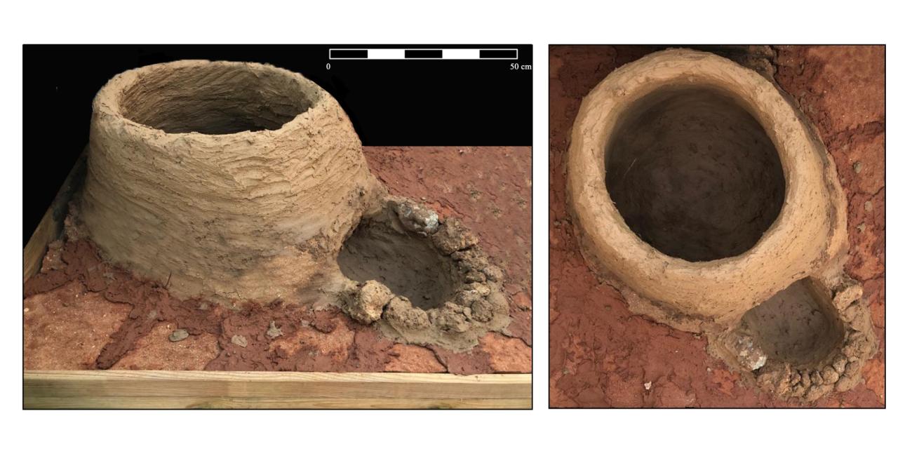 The collection of raw material and the construction of these 1:2 (fixed adobe) and full-scale (portable ceramic) models of ovens required a low investment of time, demonstrating that the manufacture and use could be easily performed even by unskilled individuals. However, the ignition and maintenance of the fires would have required specific expertise in order to achieve reasonable timings. The experimental firings have shown that atmospheric conditions are also a variable to take into consideration, as they can condition the level of difficulty of ignition, as well as the need to keep a constant monitoring on the fire to ensure it does not extinguish. Likewise, in addition to the demanding work of fire control, it has been observed that the preparation of certain foods -boiled and fried preparations mostly- required a rigorous control. Archaeological evidence supports that these structures would have been located in sites with certain protections against adverse weather conditions, such as patios or indoor spaces that protected the fire from unfavourable environmental situations like rain or strong winds, phenomena that we experienced during the execution of the second experiment.