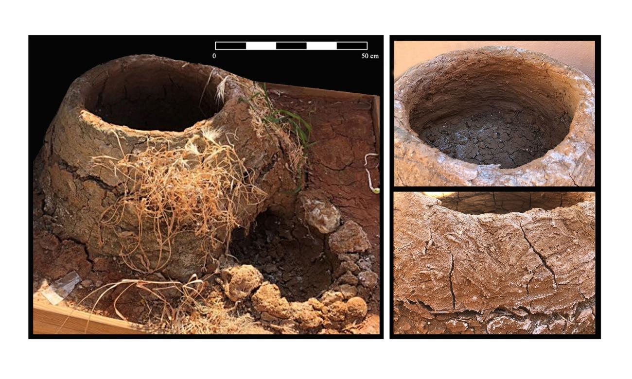 In this case, a professional potter (Cerámicas Ramírez) was responsible for making a portable pottery bread oven, using a potter's wheel (See Figure 9). The reproduction was designed based on the characteristics of the remains of portable tannūr ovens excavated at the Punic pottery workshop of Villa Maruja - Janer (San Fernando, Cádiz) (Bernal et al., 2003), located nearby the source where the raw clay was collected. This type of ceramic pyrostructure, like the previously mentioned ones but smaller in dimension (30-60 cm in diameter) and mobile, have also been attested in the Greek world since the second half of the seventh century BC (Claquin, 2018, p. 490).