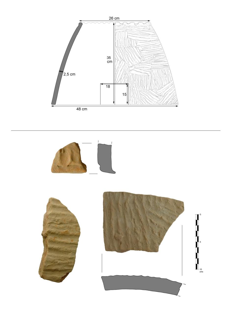 The upper opening of the oven would have been used for cooking both meat and fish on skewers, taking advantage of the heat provided by the flames located at the bottom of the oven. The possibility of roasting fish and meat chunks while baking bread is adhered to the interior walls has been established. On the other hand, some researchers had mentioned the possibility of making stews by placing cooking vessels on the outside of the bottom opening and using the leftover embers as a heat source (Gener, et al. 2014: 30). Therefore, an experiment was carried out to examine the plausibility of this practice. Furthermore, this was contrasted with the results obtained from another experiment designed to test the preparation of boiled cereals (stew) over an open fire. However, in none of these cases was it possible to cook using residual heat, as both preparations required the presence of a well stoked fire under them as the main source of heat (replicas of pots and pans contemporary to the ovens were used). Therefore, cooking boiled cereals over embers does not seem to be possible, or, at least, it is not an easy technique, and direct exposure to a fire is required to maintain the necessary temperature until the desired cooking result is obtained. In any case, and as suggested by previous research (London, 2016, pp.111-117), the bread could also have been baked on flat plates or other shallow ceramic vessels, but only over hot embers and not over ashes – unlike when directly cooked over the ashes with no vessel.