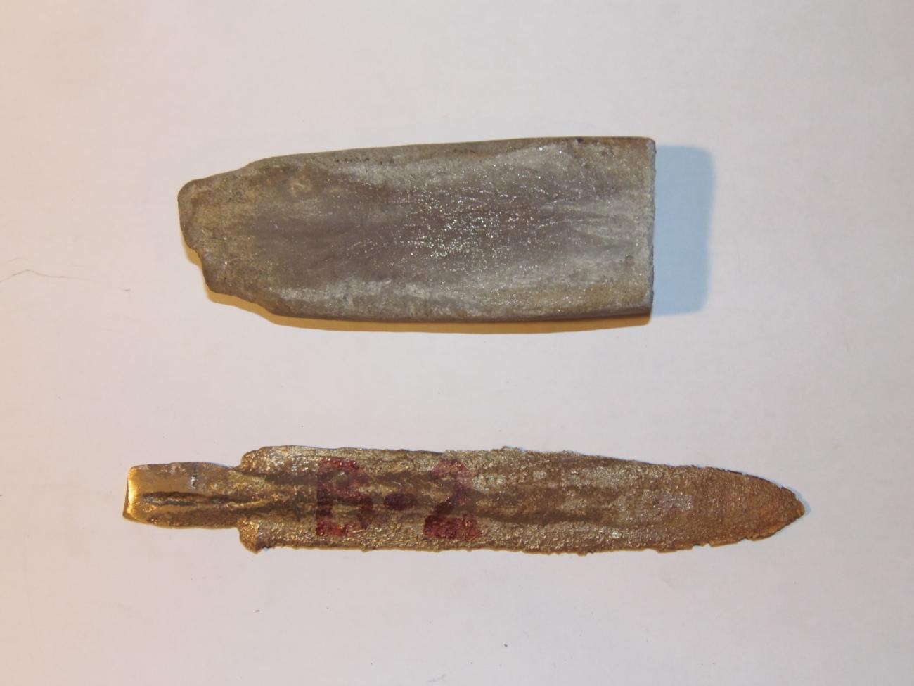 It is currently difficult to link the Baffoni Cave mould to either the bronze dagger or the stone sharpener found in the cave, because we lack sufficient documentation from Radmilli’s excavation. It seems unlikely that the three objects belong to the same period because of the composition of the prills found on the mould and in its hollow.