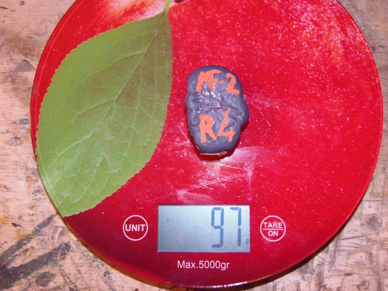 | F2 | Second tentative with the fire pit. Successful. Weights 37 gr. |