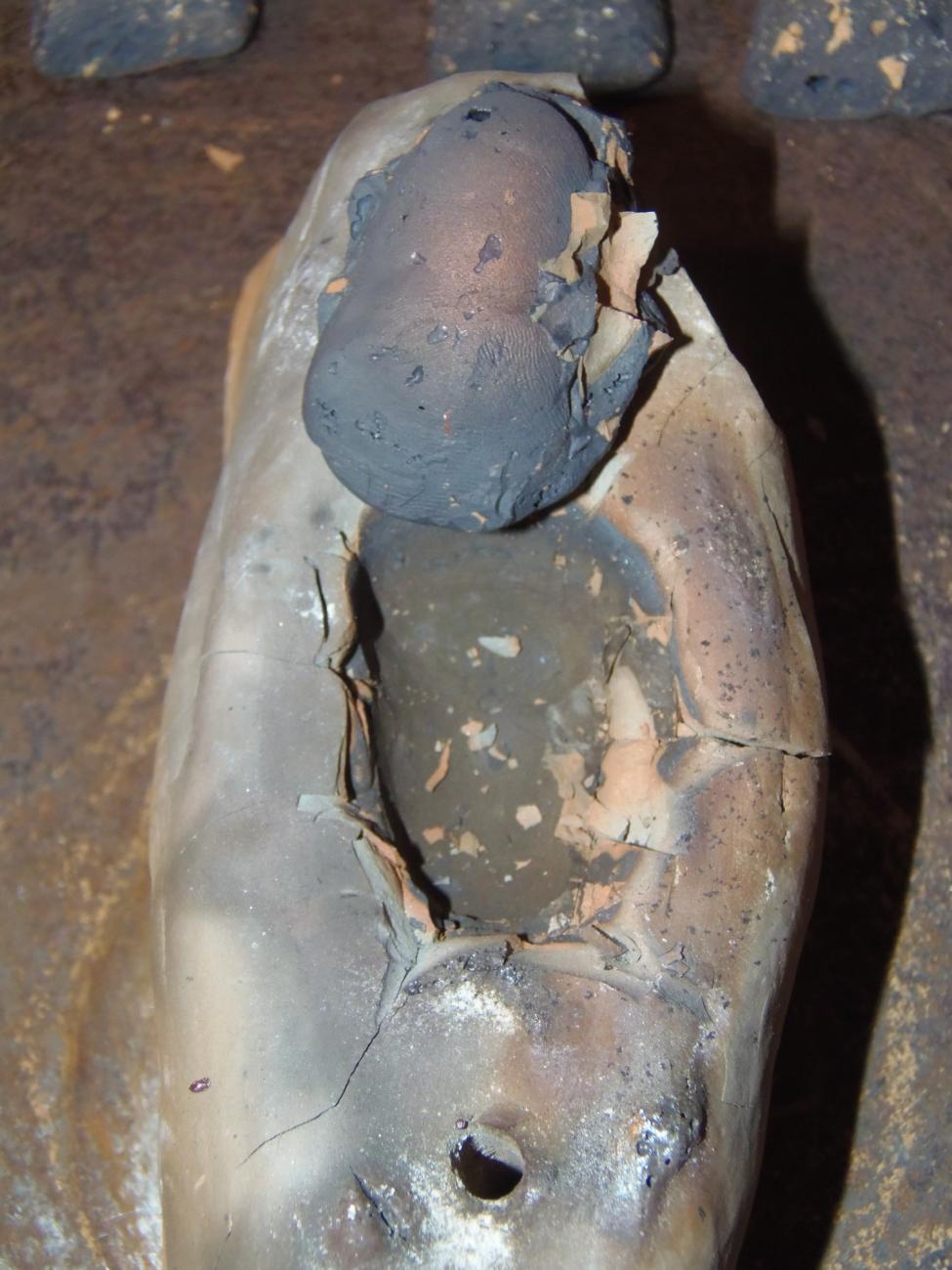 | MF MAV-II | Made with Gubbio marl. Hollow done with the lead stamp. Not cooked. Used for 3 copper casting using the fire pit. Undamaged. |