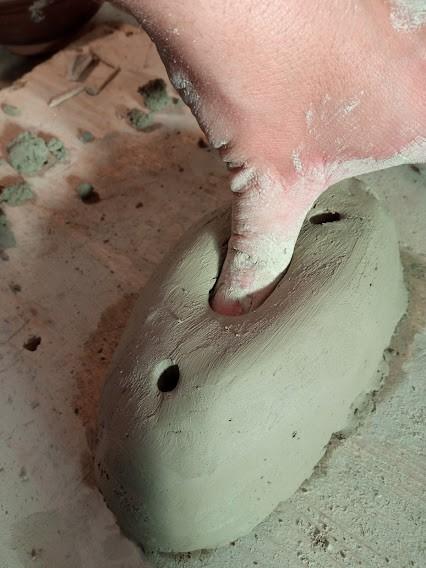 It was decided to make four moulds. One (MF-1) would be made using soil picked from a field, another (MF-2) using commercial red clay and two using commercial white clay (MF-3 and MF-4). Both the red and white clay were imported from Tuscany. All four would be modelled by hand when wet, and the hollows would be formed by pressing the thumb in the clay. The four moulds and hollows would be polished using fingers (See Figures 3 and 4).